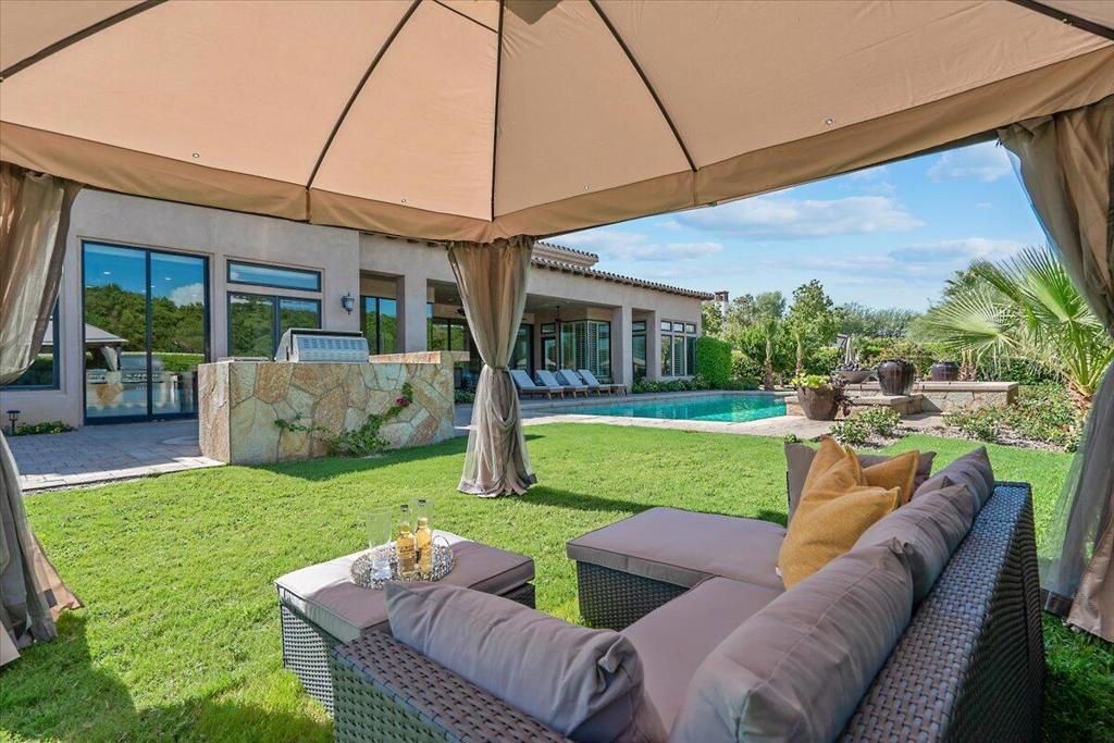 Tuscan Elegance in Griffin Ranch Welcome to your Tuscan masterpiece in the heart of Griffin Ranch! This exquisitely crafted estate, built in 2007, spans nearly 5,500 square feet and sits on an expansive 25,000+ square foot corner lot. Designed for luxurious living, the home offers four spacious bedrooms--including a private casita with separate access--five bathrooms, and a three-car garage.Step inside to a grand open floor plan where every detail reflects quality craftsmanship. Travertine floors, large baseboards, crown molding, and solid-core doors elevate the interior, while a gourmet double-island kitchen features granite slab countertops, Wolf and SubZero appliances, and a wet bar--perfect for entertaining. A custom projection entertainment system, three fireplaces, and intricate window treatments enhance the ambiance.The master retreat is a sanctuary of comfort, complete with a sitting area, makeup vanity, oversized walk-in shower, jetted soaking tub with a fireplace, and an expansive walk-in closet. Each guest suite offers an en suite bath and generous closet space.Outside, a private paradise awaits. A massive sliding stack door seamlessly connects the indoor and outdoor living spaces, leading to a covered patio, a resort-style pebble-tech pool and spa, and a built-in BBQ area with a sink and mini fridge. Lush landscaping frames the breathtaking views, creating an idyllic retreat.