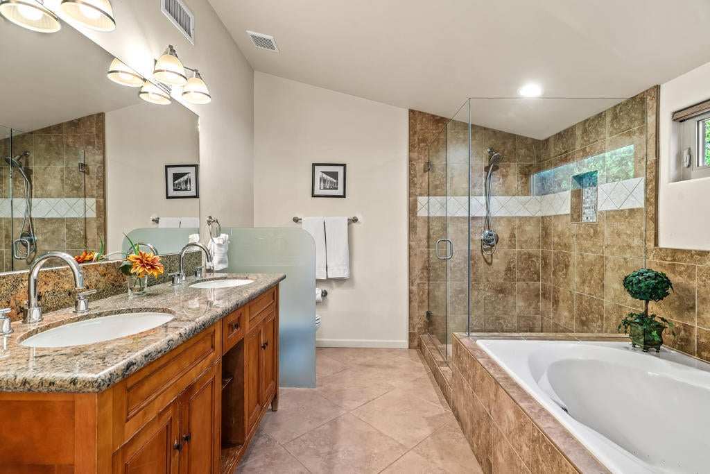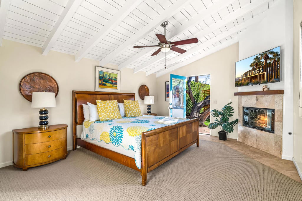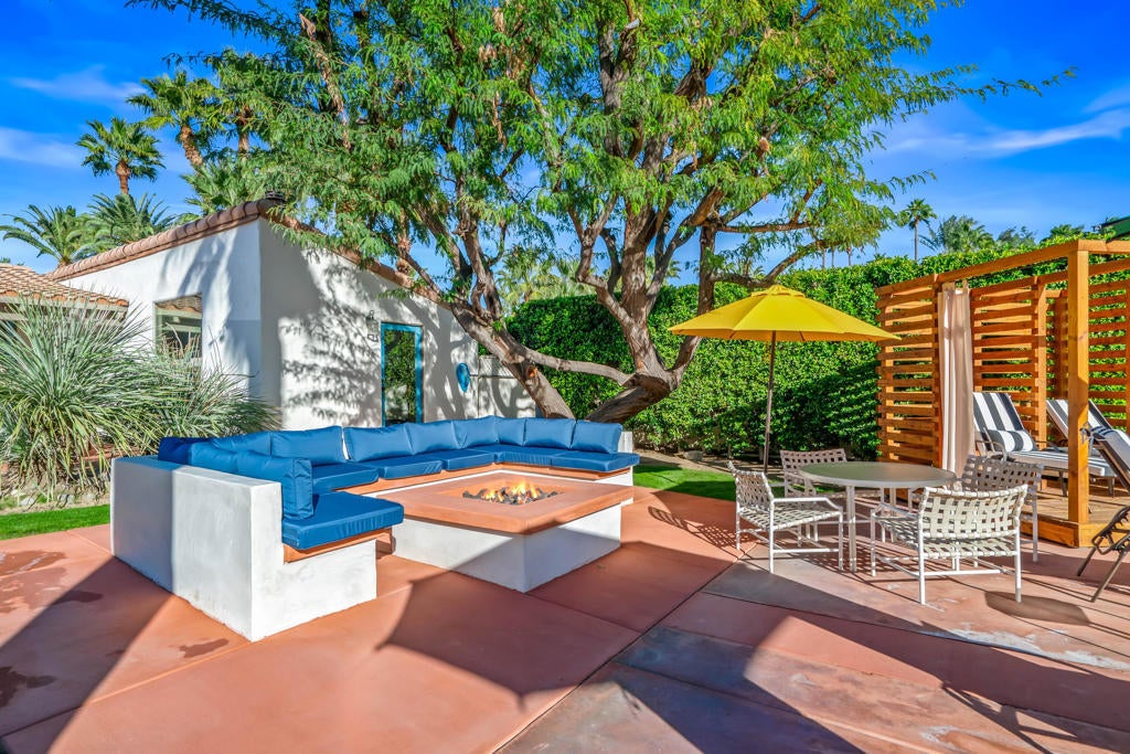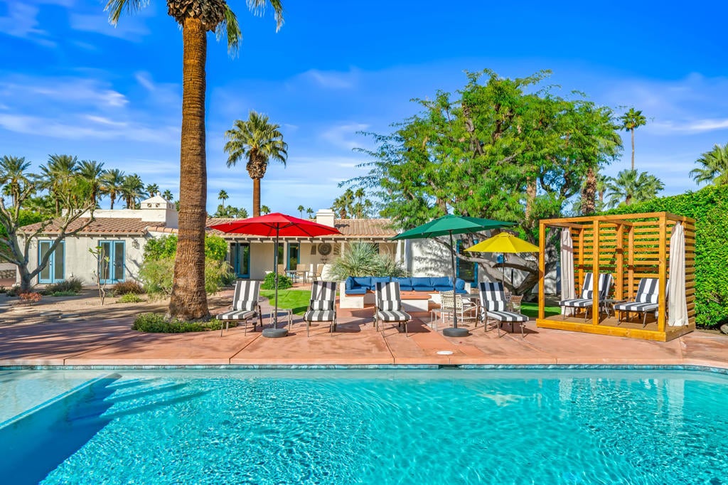 Step through the private gated entrance of this legendary Spanish Estate in Little Tuscany and discover why the stars chose this hidden gem in Palm Springs' most exclusive area. Completely enveloped by towering hedges and dramatic walls, this Old Las Palmas adjacent masterpiece offers what many crave ... seclusion ... but close proximity to all Palm Springs offers. The shimmering pool greets you upon arrival, reflecting the majestic San Jacinto Mountains that stand guard over this private paradise. The estate's strategic south and west orientation captures nature's daily masterpieces--golden sunrises that gently warm the pool waters and spectacular sunsets that paint the sky in hues of amber and rose. Mountain vistas frame every moment. Explore the exquisite interior, where five fireplaces create an ambiance of warmth and charm, complemented by authentic beamed ceilings and travertine floors. This estate boasts five spacious bedrooms, all with private ensuite baths. The tour continues to the independent guest casita, a sanctuary offering a private retreat complete with kitchenette. Outdoor living is equally luxurious with multiple patios designed for relaxation and gatherings as well as an outdoor shower and adjoining pool bath. A two-car garage with EV charger makes for ease while the cozy fire pit invites evening storytelling under the starry desert sky. Here, the timeless elegance of Spanish architecture blends seamlessly with modern comforts, offering an unparalleled living experience. Imagine hosting intimate gatherings or simply unwinding in the expansive outdoor living spaces. Every corner of this estate exudes charm and sophistication. Your private desert sanctuary awaits with this opulent haven being offered fully furnished, allowing you to immediately indulge in the quintessential Palm Springs lifestyle.