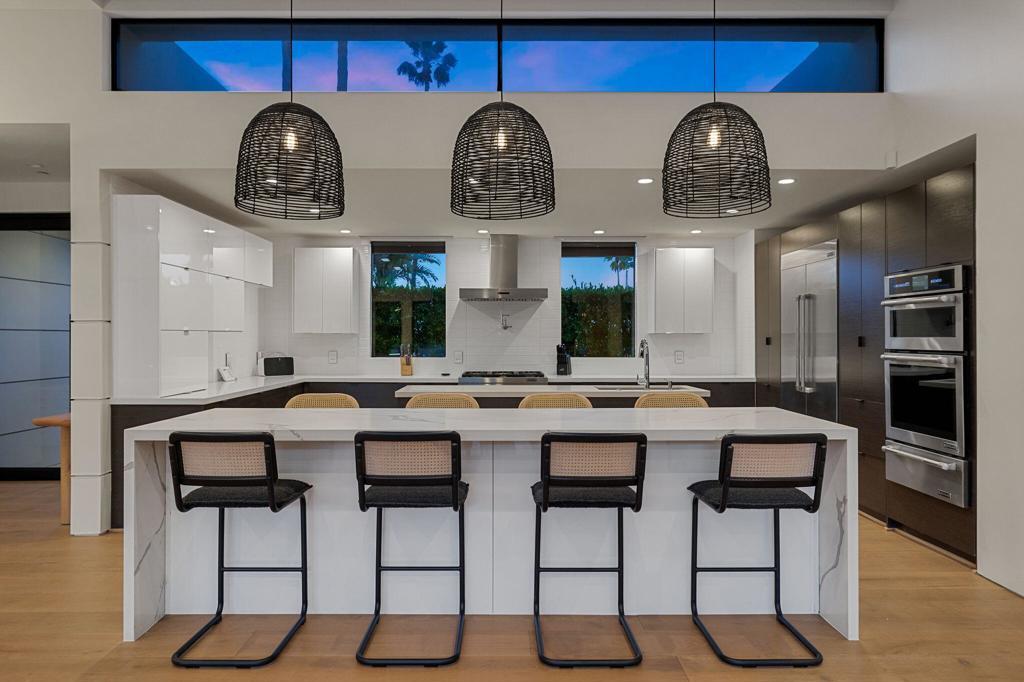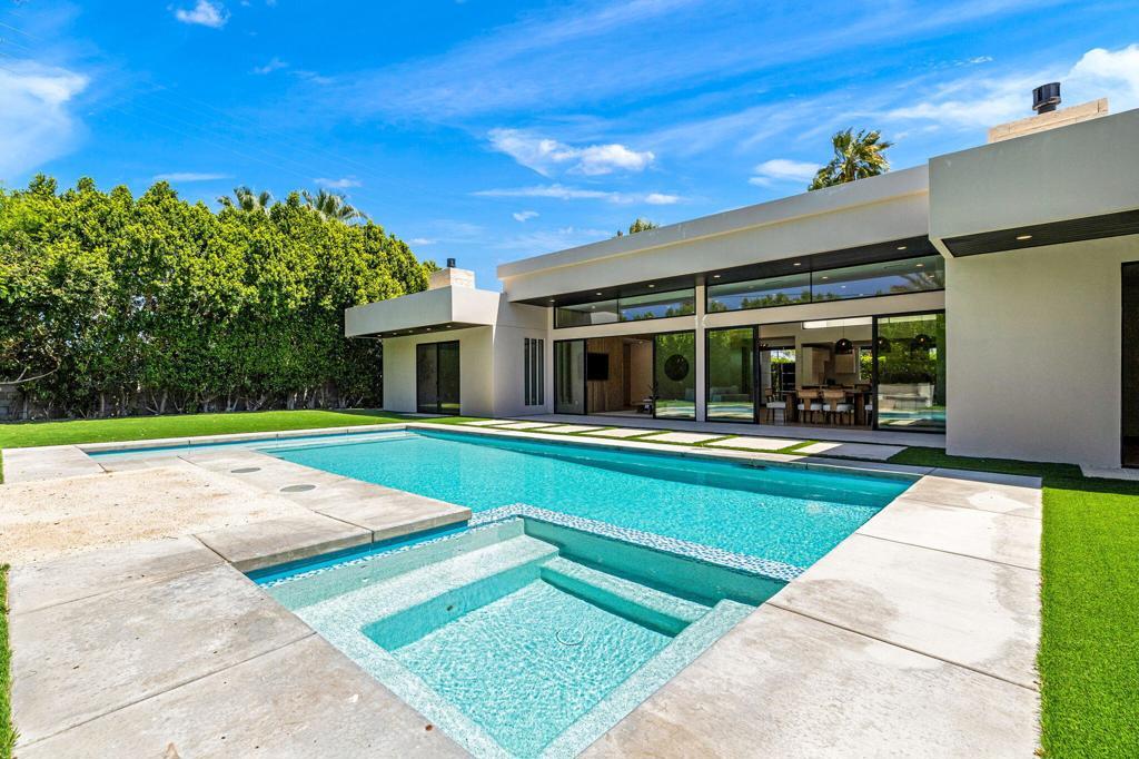 Stunning reintroduced home in the desirable Sunrise Park neighborhood of Palm Springs. Originally built in 1961 and completely reimagined in 2017, this residence blends all-new construction with thoughtful mid-century architectural nods. A large circular driveway and private gated entrance set the tone for this impressive property. Offering over 3,400 square feet, the home features 5 bedrooms and 4.5 bathrooms--with 4 bedrooms en suite, including the attached casita. Bright, open living spaces flow seamlessly between the kitchen, dining, and living areas, creating an exceptional indoor/outdoor lifestyle. Walls of glass open to a beautifully designed backyard with breathtaking mountain views, a sparkling pool and spa with laminar deck jets, and a custom firepit with generous seating--perfect for entertaining or relaxing under the desert sky. The oversized primary suite enjoys direct access to the pool and spa and includes a luxurious bathroom with a soaking tub, walk-in shower, and expansive walk-in closet. Additional guest suites are thoughtfully positioned on the opposite side of the home for optimal privacy. The fifth bedroom is currently used as a home office, offering flexible space for work, guests, or hobbies. Additional highlights include a spacious laundry room with direct access to the three-car garage. The casita features its own patio and a bathroom with convenient pool access--ideal for guests and entertaining. Located in one of Palm Springs' most sought-after neighborhoods, Sunrise Park offers close proximity to shopping, dining, casinos, and the vibrant nightlife of downtown Palm Springs. Schedule your private showing today.