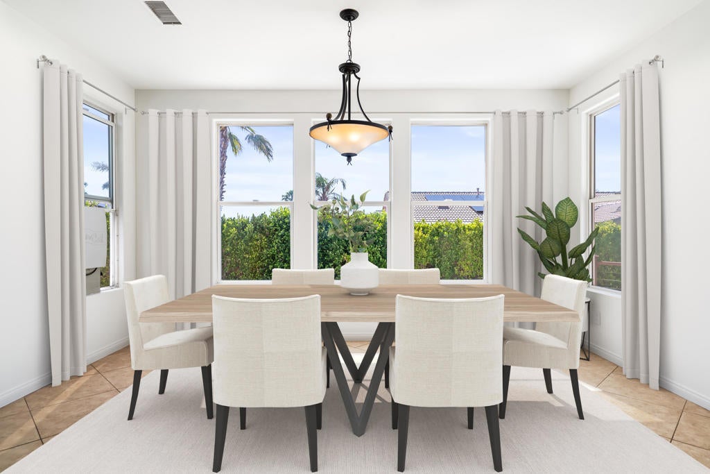 Price adjustment! Large 3BR/2.5BA single family home with private pool and spa in the sought after Mission Lakes Country Club *Modern 2005 construction with an open floor plan and magnificent vaulted ceilings *Chef's kitchen with center island and stainless steel appliances and a 4-burner induction cooktop with pop up vent *Spacious dining area overlooking the private backyard * Grand living area with gas fireplace and direct access to a new deck (with retractable awning), pool and spa added in 2021 *Primary bedroom with walk in closet and spa like bath with soaking tub and separate shower with built in seating bench *Guest bedroom with en-suite bath *Den/3rd bedroom is perfect for guests or as a home office *1/2 bath and separate laundry room with a full size washer & dryer *Internal access to a 3-car side by side garage with additional parking in the driveway *Excellent closet space, brand new recessed lighting inserts and modern screw less electrical and switch plates throughout *Fresh interior paint job and brand new carpet in the bedrooms *Owner solar purchased in 2022 *Dual zoned central heat and AC plus swamp cooler; AC units installed new in 2022/2023 *New hot water heater in 2022 *2386 sq ft and built in 2005 (per tax record - not verified by sellers or agent) *HOA Dues: $465/mo (includes use of the club house, gym, golf course, tennis, community pool and dining/bar options)