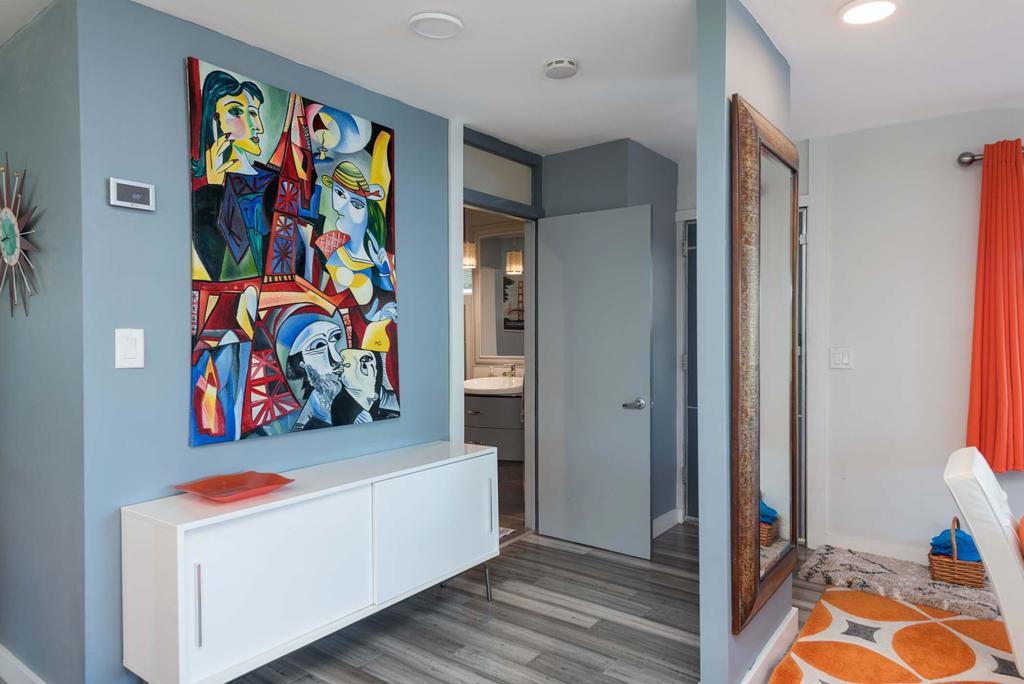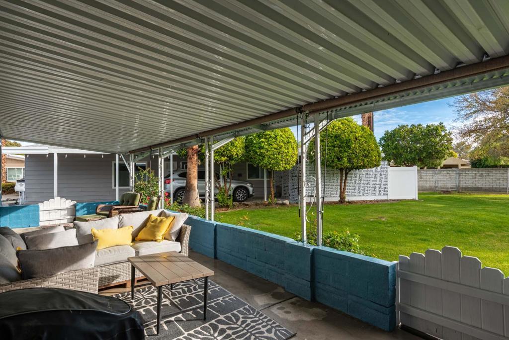 Check out this Groovy MCM (Mid-Century Modern) inspired 2 Bedroom / 2 Bath home at Palm Springs View Estates, an active 55+ Community. This Furnished unit has 1440 sq. feet, located on an interior quiet cul-de-sac lot next to an expansive greenbelt area for you and pets to enjoy. The East facing covered patio would be great for morning coffee or afternoon beverages with friends. The spacious remodeled interior has newer Dual Pane windows with a wonderful Gourmet Kitchen featuring a Full array of Stainless Appliances and Quartz Countertops. The extra large Living Room space is Light & Bright and offers a view of the San Jacinto Mtns. There are two separate sitting areas of Dining Room and an Kitchen adjacent Den Area. The Primary En Suite has an upgraded window for additional light and the Bath has a stunning shower with a separate large soaking tub. The guest bedrooms has its own En Suite with an Enormous Step In two-person Shower with Rain Forest Shower head! In additional, there is an adjacent step down laundry room with abundant storage and closet off of the Primary Bedroom. It features newer full-sized Washer/Dryer with owned Water Softener and separate entrance from exterior patio. There is also a rear attached Artist Studio with finished walls, floors and electricity. There is a Newer Evaprative Cooler System on Roof. Also, there is tandem covered carport area with two additional sheds for storage, Bonus !! This unit is close to one of the three on-site pools and spas. Palm Springs View Estates is rent controlled and centrally located near PS Int'l Airport as well as local shopping (Trader Joe's, Target) multiple restaurants and local pubs for evening entertainment. There is easy Freeway access on Gene Autry Drive to the I-10. There is an on-site Clubhouse with tons of social activities. Buyers will need to qualify with income and credit minimums. Check out this great home in a wonderful location. Make an Offer Today!!