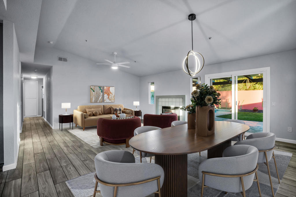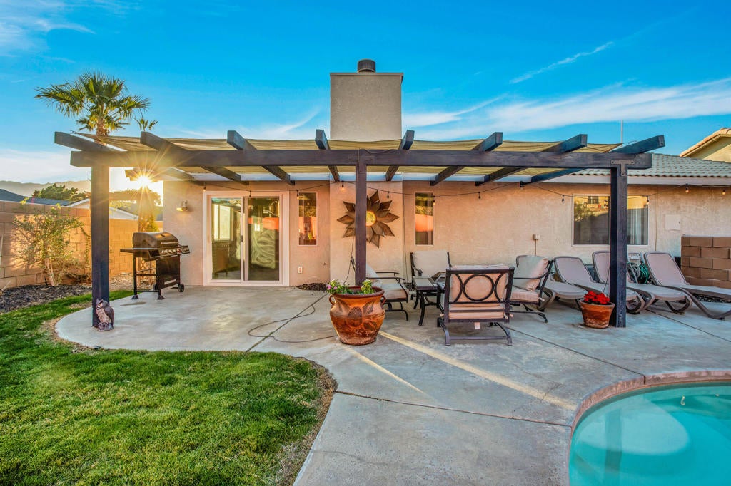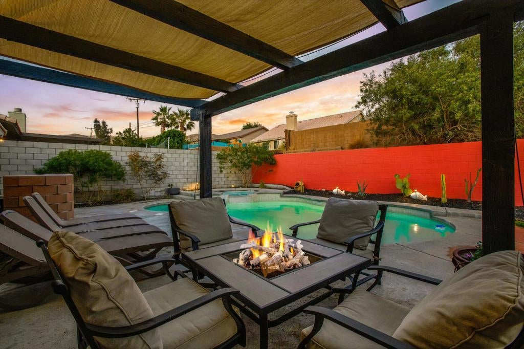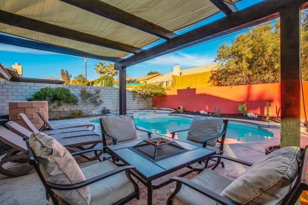 Beautifully renovated, this home is nestled in a quiet residential neighborhood, has a sparkling private pool and spa. This property features ceramic tile floors and a functional kitchen outfitted with quartz countertops and updated appliances. The expansive living and dining area boasts an open floor plan that offers flexible configurations to suit your lifestyle.Enjoy the nearby Two Bunch Palms spa and Joshua Tree national park. Palm Springs is just a quick 15-minute drive away. This is the desert retreat you've been dreaming of--perfect for weekend getaways or as a full-time residence for an active family. Seize the opportunity--call the agent today to arrange your viewing!(Note: Some photos have been virtually staged.)