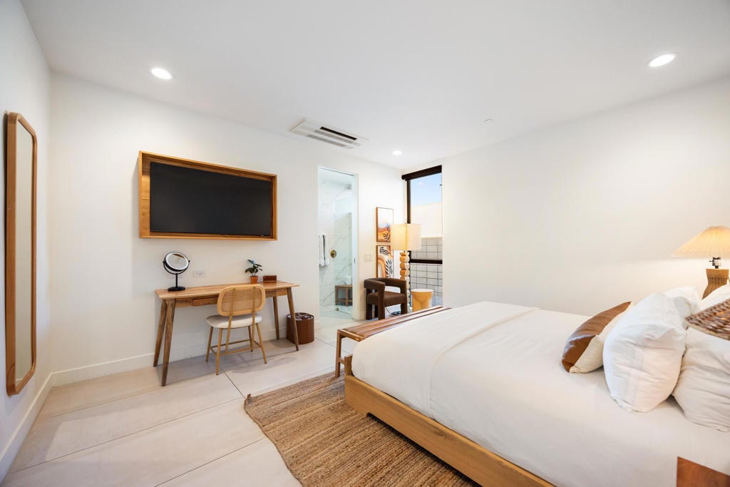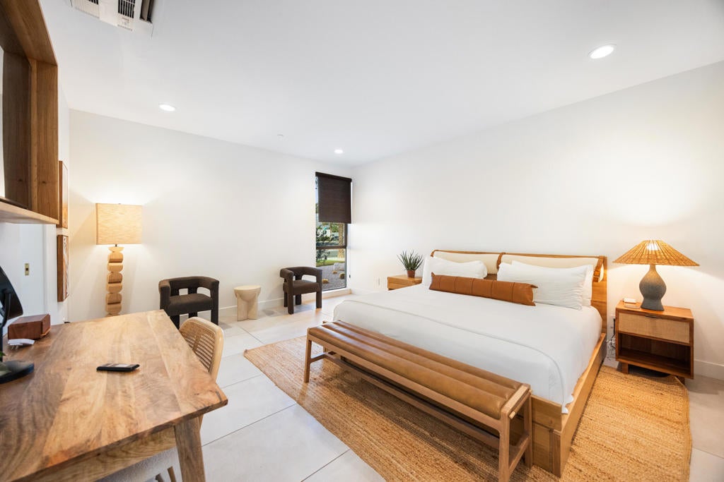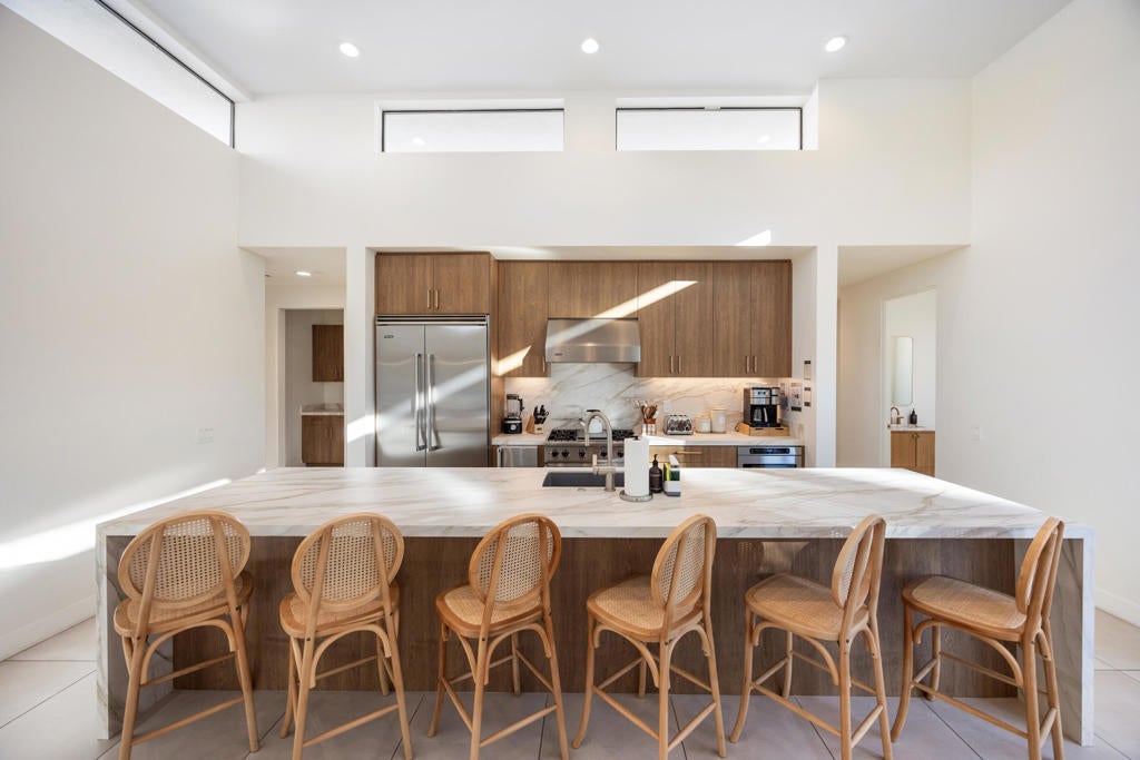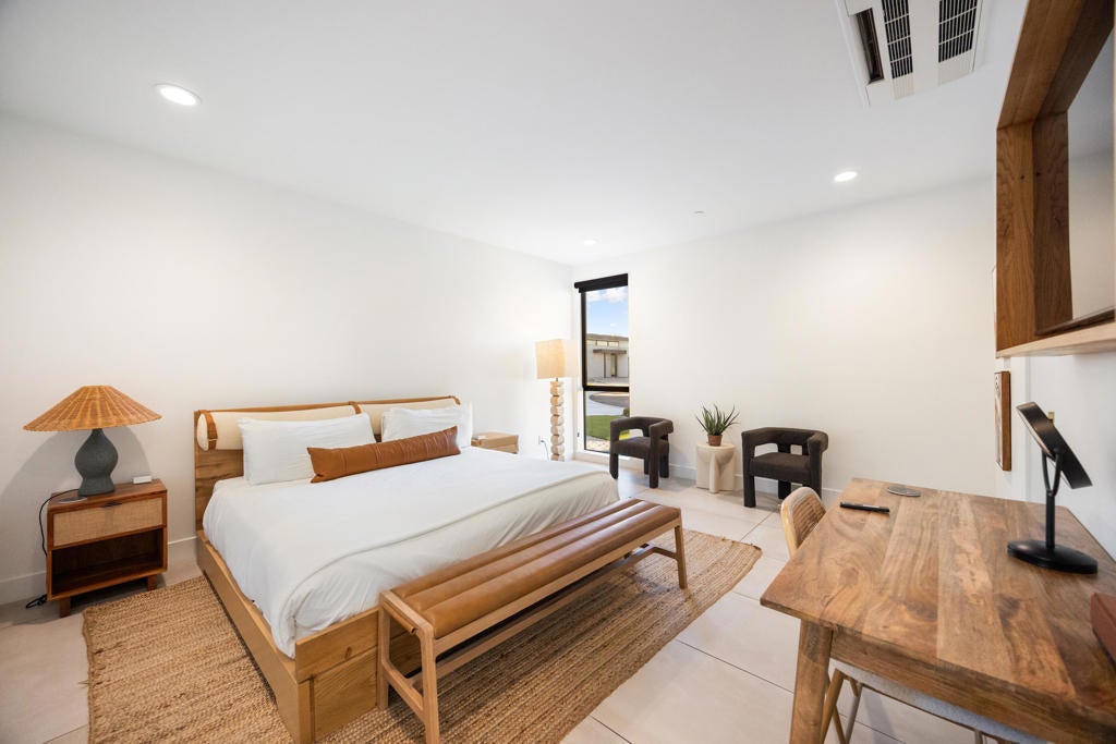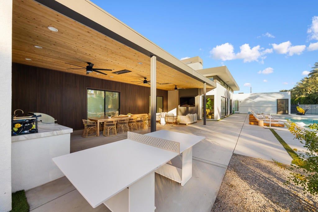 Located in the prestigious, gated Polo Villas community of La Quinta, just minutes from the world-famous Empire Polo Grounds home to the Coachella and Stagecoach music festivals this exceptional 4,188-square-foot estate represents the ultimate blend of luxury living and prime location. Whether for personal enjoyment or high-performing rental potential, proximity to these iconic events makes this property especially desirable. The residence offers 6 bedrooms, 6.5 bathrooms, and a dedicated media room, thoughtfully designed to capture modern sophistication. Soaring ceilings, an open-concept layout, and clerestory windows fill the great room with natural light, creating an inviting and expansive living environment ideal for entertaining large groups. Outdoor living is a true highlight, featuring a private, resort-style backyard complete with a sparkling pool and spa, full outdoor kitchen, pickleball court, and fire pit. Designed for year-round enjoyment, the covered patio includes ceiling fans, heaters, TV, and integrated Sonos speakers perfect for relaxing after a day at the festivals or hosting guests in style. Inside, the gourmet kitchen, luxurious media room, and generously sized bedroom suites with large-format tile ensuite bathrooms provide comfort and functionality for both owners and guests. Additional features include a solar energy system, EV charger, smart home technology, and dual washer and dryer sets enhancing convenience and efficiency. Approved for short-term vacation rentals in La Quinta, this home offers a rare opportunity to own a high-end desert retreat with exceptional income potential, particularly during peak festival season. Combining privacy, elegance, and unmatched proximity to Coachella's event grounds, this property stands as a premier desert investment and lifestyle destination.