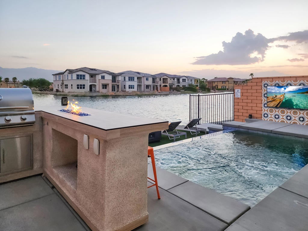 This upgraded, professionally managed lakefront short-term rental is ideally positioned on the water in Terra Lago, offering breathtaking lake and mountain views along with a private infinity-edge pool and spa. Designed for both comfort and performance, the home features bright, open living spaces and high-quality finishes throughout--purpose-built to maximize rental demand and guest satisfaction.The upgraded kitchen is fully equipped with stainless-steel appliances, custom quartz countertops, a dramatic waterfall island, designer backsplash, and a dedicated coffee bar--ideal for entertaining and extended guest stays.The spacious living room provides generous seating, an 86'' smart TV, and a sleeper sofa for flexible use. Expansive windows and sliding glass doors flood the home with natural light and create a seamless indoor-outdoor living experience centered around the stunning waterfront setting.The well-designed floor plan includes four bedrooms, including a first-floor suite, with ensuite bathrooms for every bedroom--a highly desirable feature for short-term rental guests. The upstairs primary suite offers a private balcony overlooking the lake and a spa-inspired bathroom with soaking tub. A bonus room adjacent to the primary suite functions as a dedicated kids' room with bunk beds, maximizing sleeping capacity and rental flexibility.Additional highlights include a movie-theater-style room with eight reclining chairs, a climate-controlled game room with commercial-grade arcade games (including air hockey and basketball), built-in BBQ, firepits, smart TVs throughout, and a layout ideally suited for short-term rental or second-home use. This is not just an STR--it is a destination property, offering resort-style amenities that keep guests on-site and drive repeat bookings.Located in the highly desirable Terra Lago community, this turnkey, high-performing lakefront asset delivers a proven two-plus-year short-term rental history with approximately $120,000 in annual gross income. All capital improvements and guest-driven upgrades are complete--this property will be generating income from day one.Zero setup. Zero downtime. Immediate cash flow.Investors also have the rare opportunity to scale instantly by acquiring the sister property at 43250 Pietra Ct, also in Terra Lago--creating a ready-made, multi-property short-term rental portfolio in one of the Coachella Valley's most sought-after resort communities.