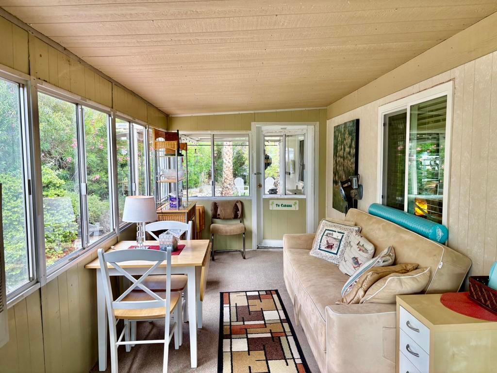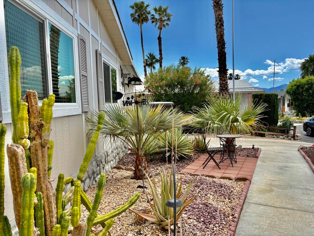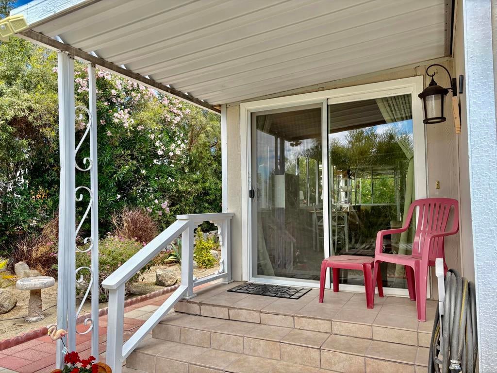 Welcome to Family Friendly Sky Valley Resort! This Beautiful 2 Bedroom, 2 Bathroom home is being offered Furnished. It is situated on a cul-de-sac and has fantastic views!Nice laminate wood flooring through out. Spacious Remodeled Kitchen with lots of Cabinets, Newer Appliances, and Stainless Steele Refrigerator. The Family Room has Large Windows to let in the Natural Sunlight and you can see the Pond & Mountains The Formal Dining Room has a nice Dining Table & Ceiling Fan The Primary Bedroom has a large Closet with Mirrored Doors & Ceiling Fan. The Primary Bathroom has been updated with a Beautiful Tiled Walk In Shower. There's a separate Laundry Room with Whirlpool Washer & Dryer. The added on Sun Room offers extra living space. It has a Evaporating Cooling System in addition to the Central A/C & Heating System Step outside to your Outdoor Living Area that is covered and has Nice Patio Furniture and a TV. In the backyard there's Artificial Turf and a one hole Putting Green.Mature Landscape all around and several Citrus Trees.There's a covered carport and also a Shed for extra storage.Sky Valley Resort is a Gated, Family Community. The Resort offers MANY Great Amenities including 13 Hot Mineral Pools & Spa's, Fitness Center, Sauna, Tennis Courts, Pickle Ball Courts, Horseshoes, Shuffleboard, Cafe, Chapel, & a Doggie Park. As a Resident you can Golf at the Sister Park, Caliente Springs, which is only a couple miles down the Road. The Property has Space Rent and is not on Leased or Fee Land. There is Space Rent of $1,068,./mo. Short Term Rentals are Allowed with Restrictions.Come out and explore the Amazing Desert Lifestyle. Palm Springs & Palm Desert is just 15-20 minutes away! You can get Financing on this Property! Call for more details!