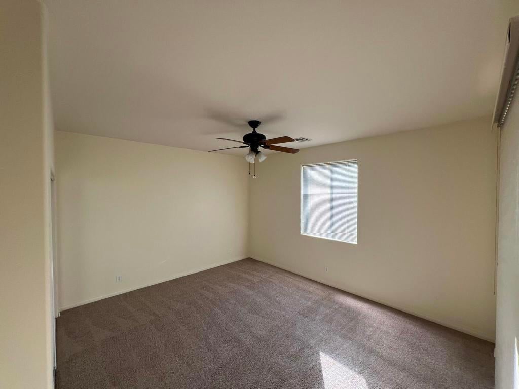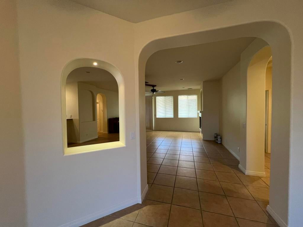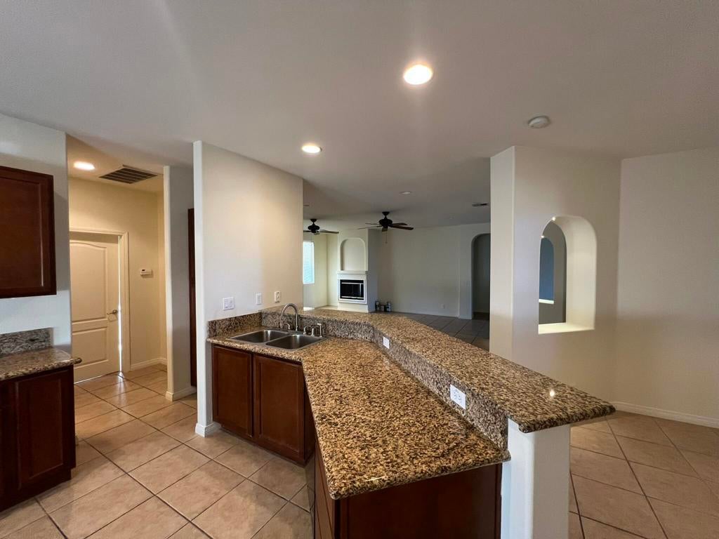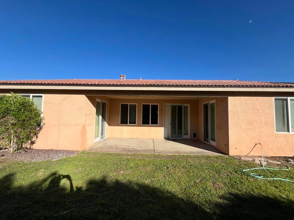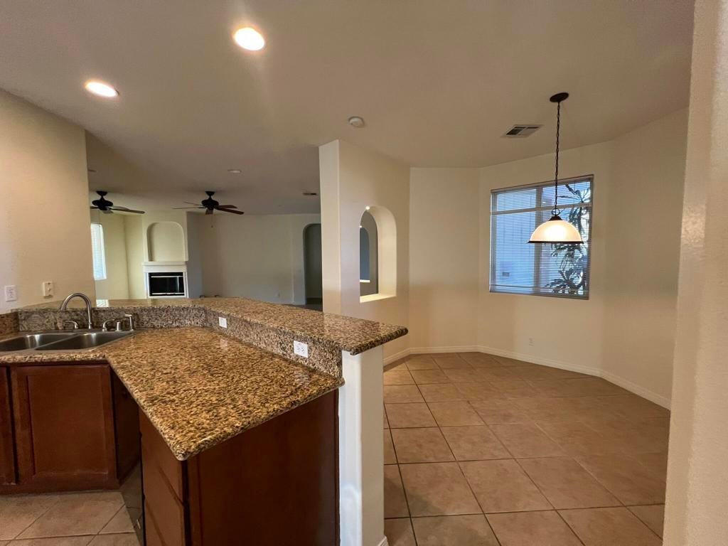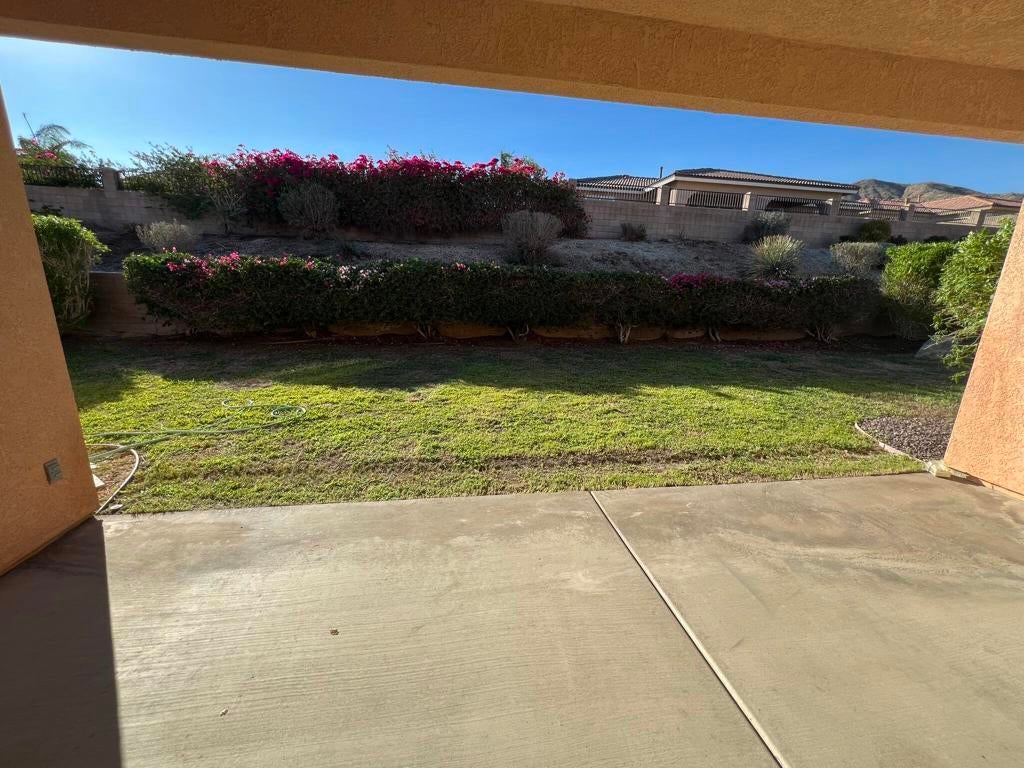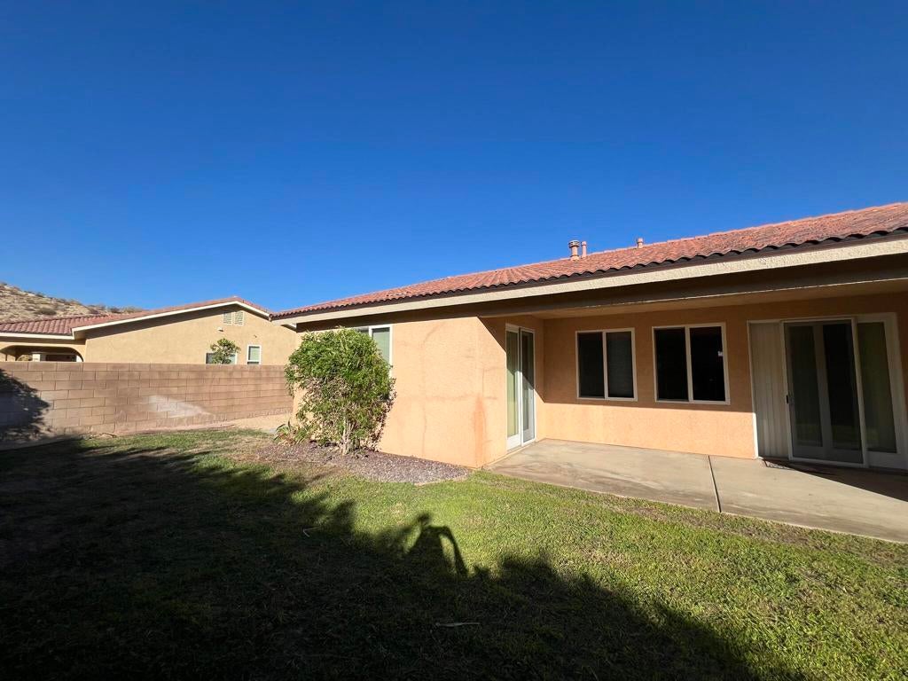 Welcome to your desert oasis in the sought-after 55+ gated community of Paradise Springs. This well-appointed 3-bedroom, 3-bath home offers 2,172 sq ft of open-concept living, perfect for both comfort and entertaining. Inside, you'll find arched doorways, a spacious granite kitchen with a breakfast bar, tile flooring in key areas, and formal and informal dining options. The primary suite and rear guest bedroom open to a large covered patio--ideal for relaxing or entertaining while enjoying stunning mountain views. Additional highlights include a walk-in closet, separate laundry room, ceiling fans throughout, dual A/C units for energy efficiency, and generous storage.Residents enjoy access to a resort-style clubhouse, sparkling pool and spa, and a putting green--all with low HOA fees.Don't miss the chance to make this Desert Hot Springs gem your next home!