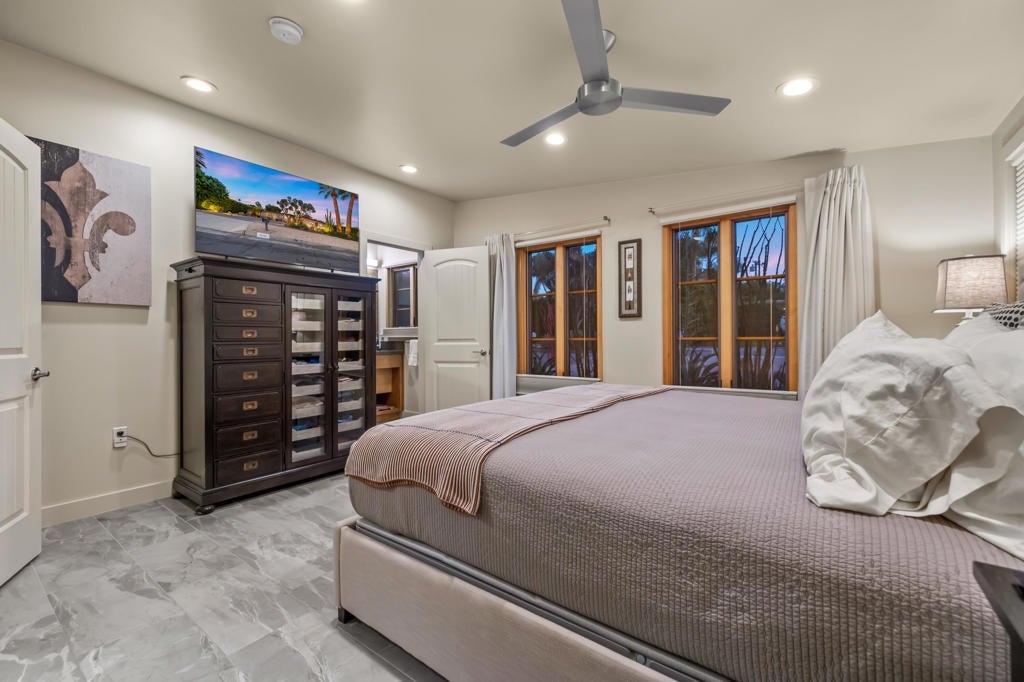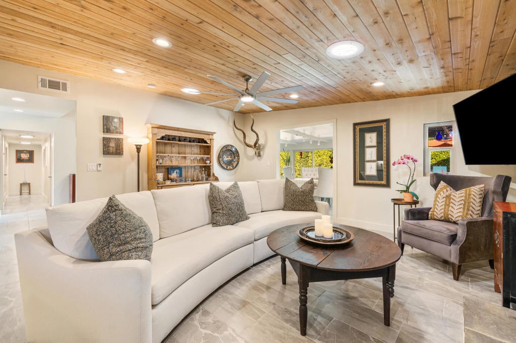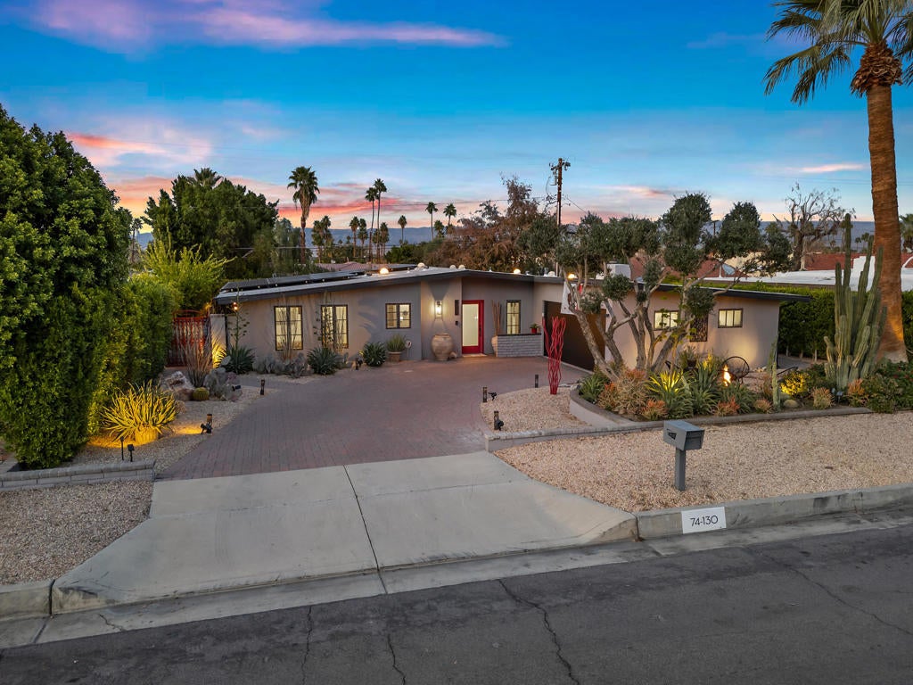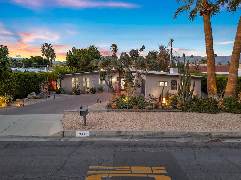 Nestled in the heart of South Palm Desert, just moments from the renowned El Paseo shopping and dining district, this captivating mid-century modern residence perfectly blends timeless design with contemporary sophistication.This 3-bedroom, 2-bathroom smart home features a two-car garage and owned solar system, offering both sustainability and remarkable savings with virtually zero electricity costs. The eco-conscious desert landscaping creates a striking first impression, setting the stage for the home's light-filled, inviting interiors.Inside, a charming open floor plan is accentuated by expansive windows and strategically placed Solatubes, infusing every space with natural light. The primary suite offers a peaceful retreat, featuring a beautifully remodeled step-in shower adorned with elegant tile and a picture window overlooking a tranquil private courtyard.The modern kitchen is a chef's delight, boasting stainless steel appliances, generous cabinetry, and a large center island--ideal for both casual dining and entertaining. Two guest bedrooms share a stylishly remodeled bath and provide direct access to the pool and outdoor living spaces.Thoughtful upgrades throughout include:New appliances and designer tile flooringRaised ceilings and energy-efficient windowsFrosted closet doors, contemporary blinds, and updated fixtures.New gutters, refreshed landscaping, and modern bathroom finishes.Whole-house water softener and water purification system.Designed for year-round comfort and effortless entertaining, the backyard oasis showcases Alumawood patio coverings, a custom pool with tanning shelf and spa, and a privacy-enhancing custom block wall.With its seamless blend of style, functionality, and eco-conscious living, this South Palm Desert gem offers the perfect balance of modern luxury and timeless mid-century charm.