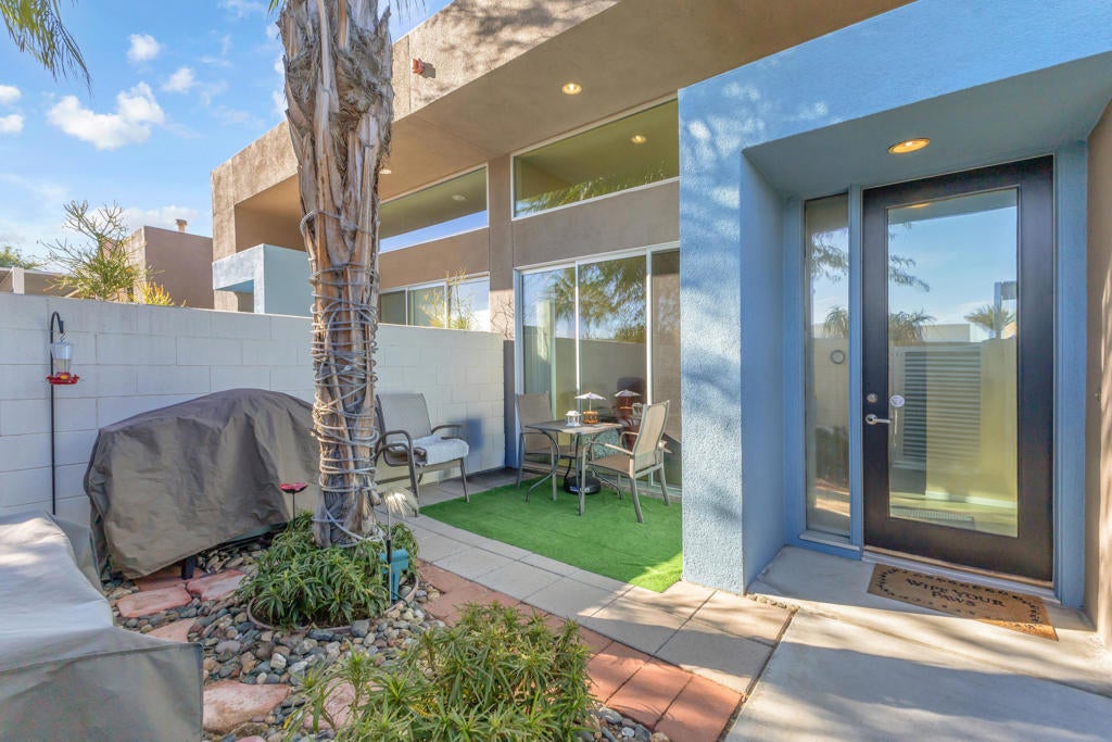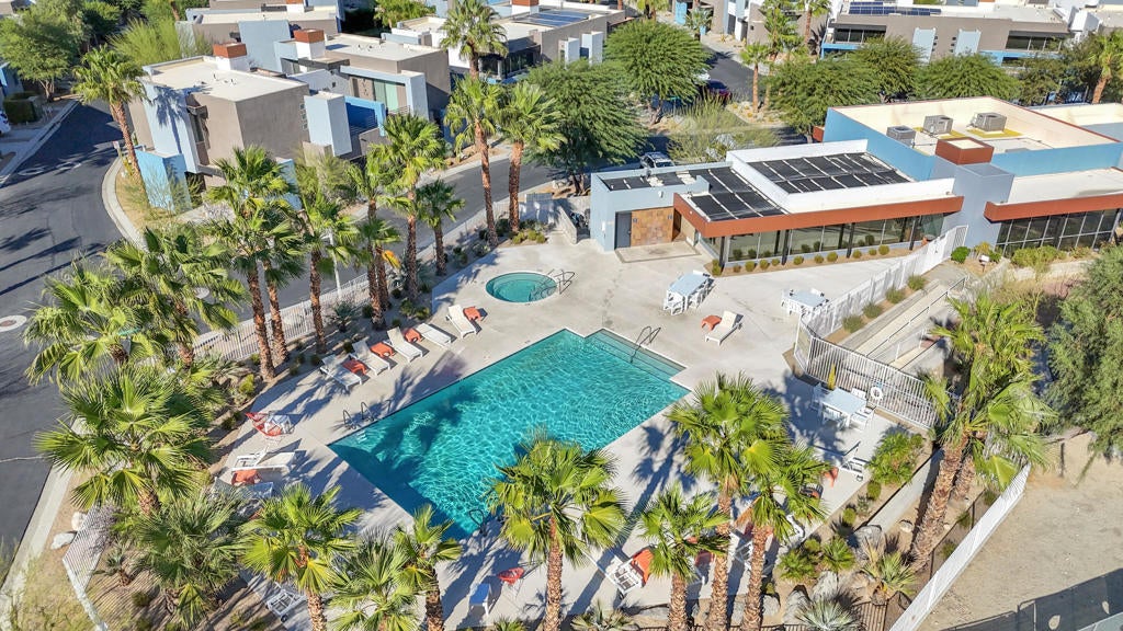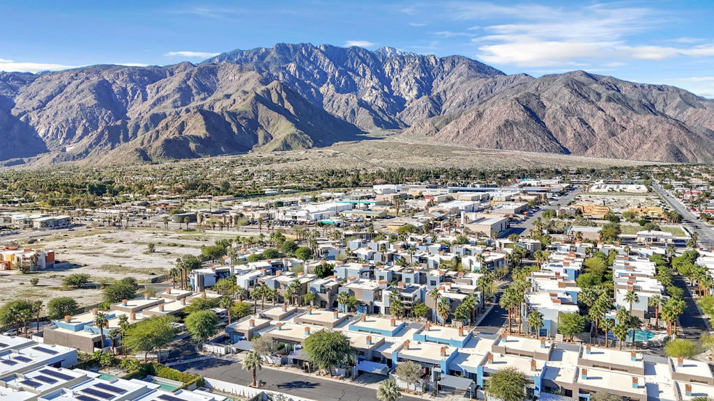Prime Palm Springs investment opportunity just 5 minutes from Downtown. Located in the highly sought-after Palermo community, this modern-style condo sits on fee land you own it outright making it especially attractive to investors. The HOA provides excellent value and includes water, trash, roof, and maintenance of common grounds, along with access to resort-style amenities featuring two community pools with heated spas, BBQ areas, and stunning views of the San Jacinto Mountains. Enjoy easy access to the I-10 freeway and quick proximity to downtown shops, restaurants, bars, and hiking trails. Known for its clean modern design and strong rental demand, Palermo remains one of Palm Springs' most desirable communities. Whether used as a second home, seasonal rental, or full-time residence, this low-maintenance property offers lifestyle appeal, rental potential, and long-term value truly a hidden gem for savvy investors.