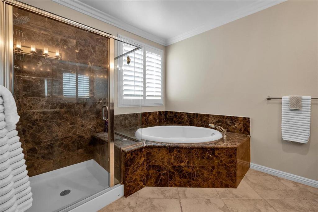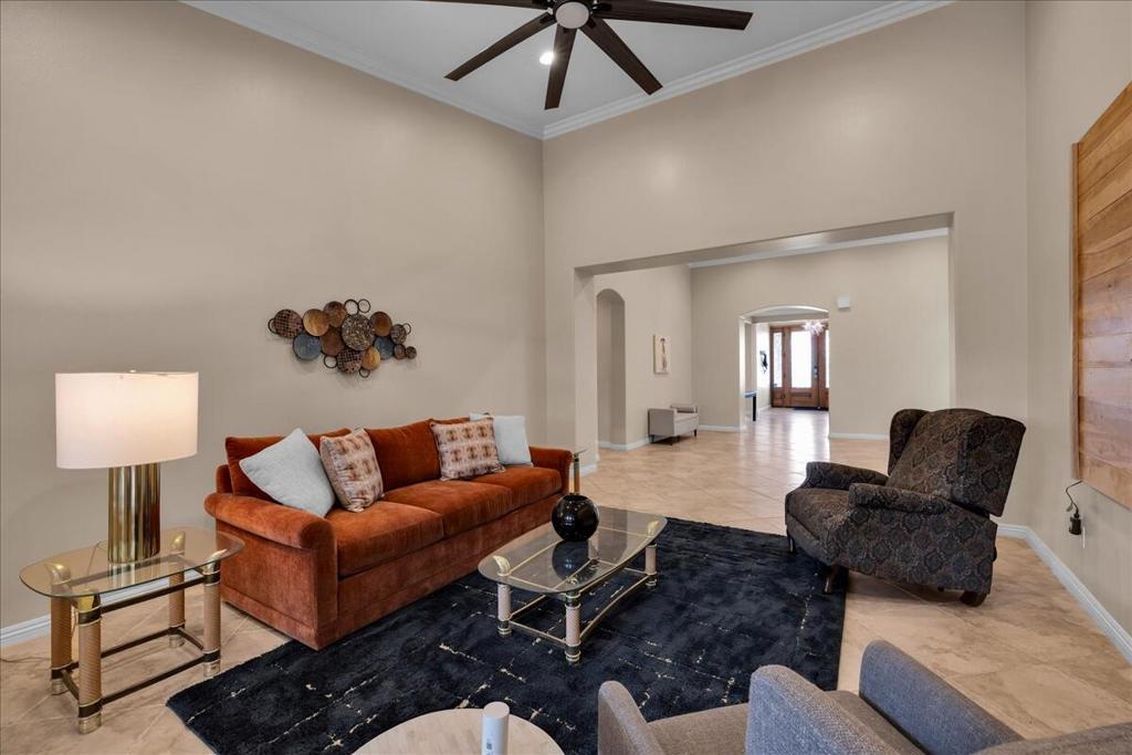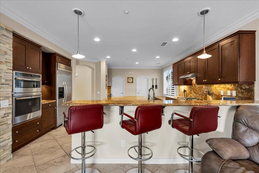 - Interior FeaturesBreakfast Bar, Built-in Features, Breakfast Area, Crown Molding, Cathedral Ceiling(s), Separate/Formal Dining Room, High Ceilings, Open Floorplan, Recessed Lighting, Wired for Sound, Bedroom on Main Level, Main Level Primary, Primary Suite, Walk-In Pantry, Walk-In Closet(s), Dressing Area, Dry Bar