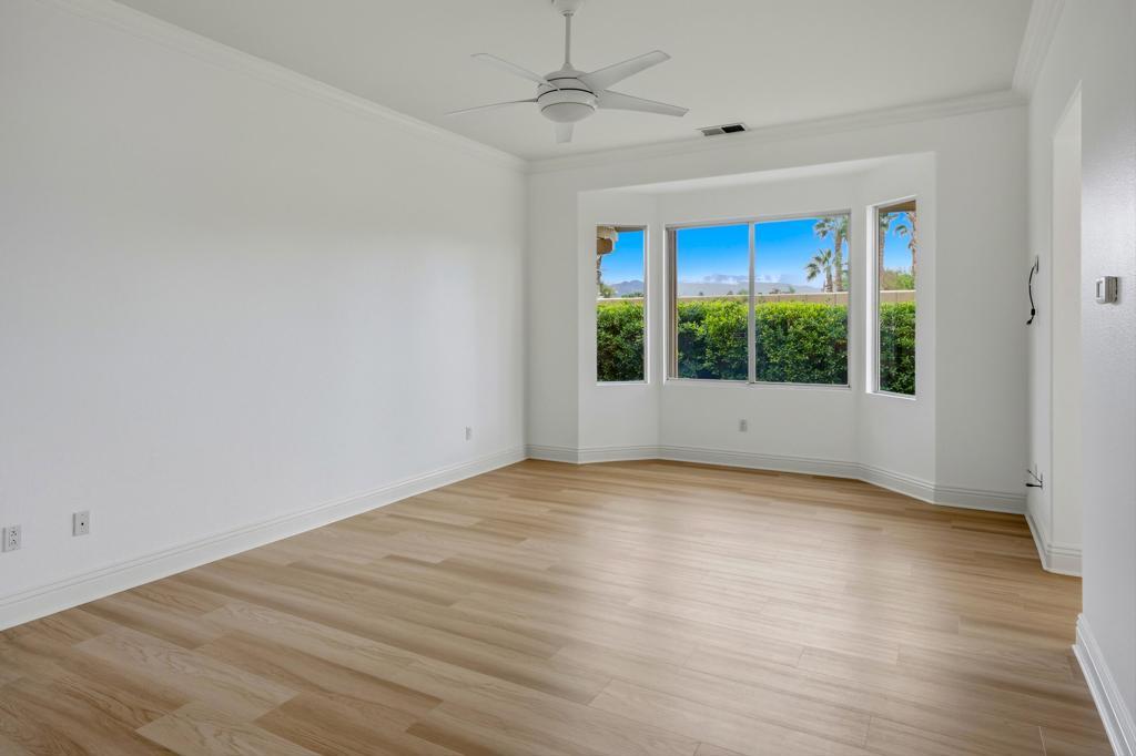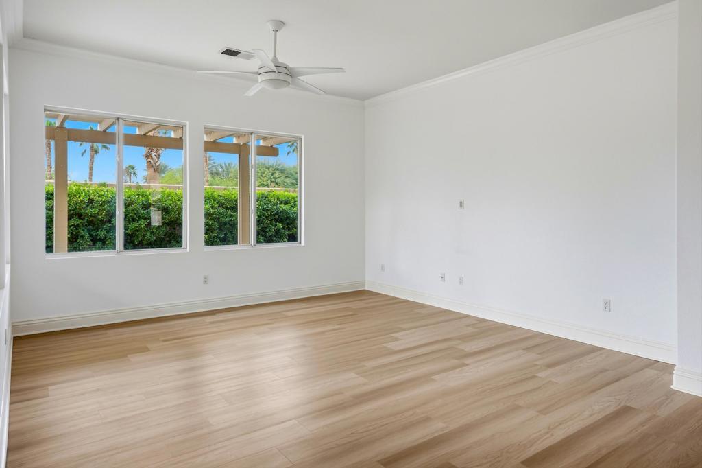 Located in the beautiful Heritage Palms Country Club, a premier 55+ resort-style community, this beautifully maintained 2-bedroom, 2-bath home with a versatile office/den or guest room featuring double doors offers comfort, style, and exceptional desert living. A convenient separate laundry room with washer and dryer opens directly to the attached two-car garage.Spanning 2,052 sq. ft., this spacious residence features an open floor plan enhanced by new luxury vinyl flooring, fresh interior paint, and new baseboards throughout, making it truly move-in ready. Additional highlights include a gas stove, ceiling fans, abundant natural light, thoughtful finishes, and a walk-in shower. large enclosed private entry patio, extra large built in refrigerator/ freezer/ walk in pantry/ gas stove and double ovens. The property offers a large, usable entry courtyard and side yard--perfect for relaxing or entertaining--along with beautiful mountain views and a quiet street location. Priced to sell, this home delivers outstanding value and lifestyle.Residents of Heritage Palms enjoy world-class amenities, including an 18-hole championship golf course, indoor and outdoor pools, pickleball and tennis courts, a fully equipped fitness center, grill room and restaurant, card and billiards rooms, and an active calendar of social clubs and events. Cable TV is included in the HOA, with monthly dues of $600.Ideally located just minutes from the Indian Wells Tennis Garden, additional top-rated golf courses, upscale shopping, Costco, grocery stores, and Trader Joe's, this exceptional home offers the perfect desert oasis and a lifestyle worth living.