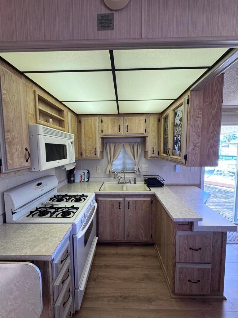 Located in the beautiful Desert Aire resort. Desert Aire is an over 55, pet free, 9 month park. Desert Aire does not permit full time residency. This park is primarily used by snow birds looking to spend the winters in our warmer climate.WOW, check out this location.!!Just listed, this 1987 park model offers a fantastic location with water and mountain views. This park model has lots of charm and comes completely furnished. Some of the exterior features are a huge covered patio and an additional elevated sitting area near the water. There is plenty of privacy and a great place to relax with a morning coffee or an evening cocktail with friends. All of the classic patio furniture is included in the sale.Inside you will find a cozy place to relax and enjoy your evenings. Some of the features are laminate flooring, tinted windows, new queen bed, full size range, new refrigerator and a newer heat pump. There is plenty of storage throughout the park model. The living room is located on the rear of the park model facing the water and mountains with a large sliding glass door leading to the patio. As mentioned before, everything is included in the sale of this park model and is completely ready to start enjoying your time in Desert Aire.