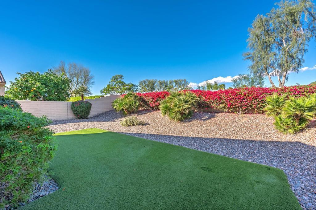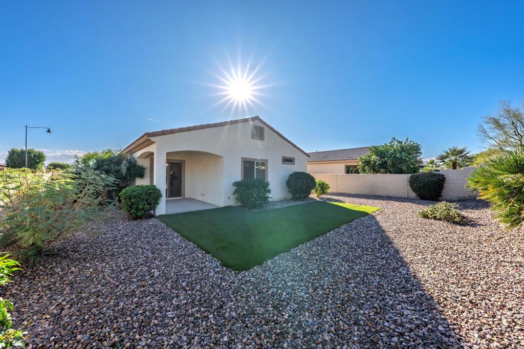 Welcome to Sun City Shadow Hills! This Montoya floor plan has 2 bedroom, 2 bath and a den, 1,432 sqft. The carpet has just been replaced with brand new laminate flooring!!! Spacious kitchen with stainless steel appliances, and a large breakfast nook, Inside laundry room. The backyard is inviting with newer Turf grass and low maintenance desert landscaping. Sun City Shadow Hills is an active 55+ community offering resort-style amenities, including two clubhouses, championship golf courses, fitness centers, pools and spas, pickleball and tennis courts, and a variety of social clubs and activities designed for every interest. Enjoy the perfect blend of recreation, relaxation, and connection in this vibrant desert community.