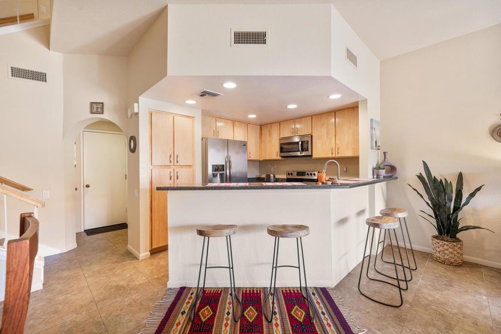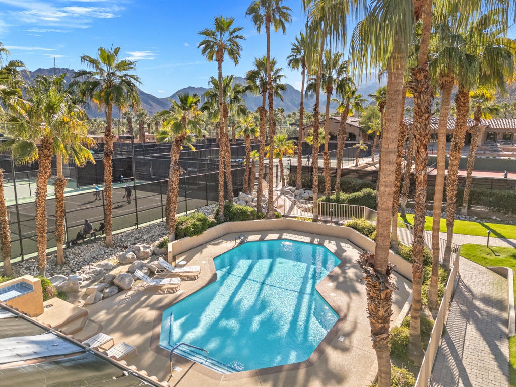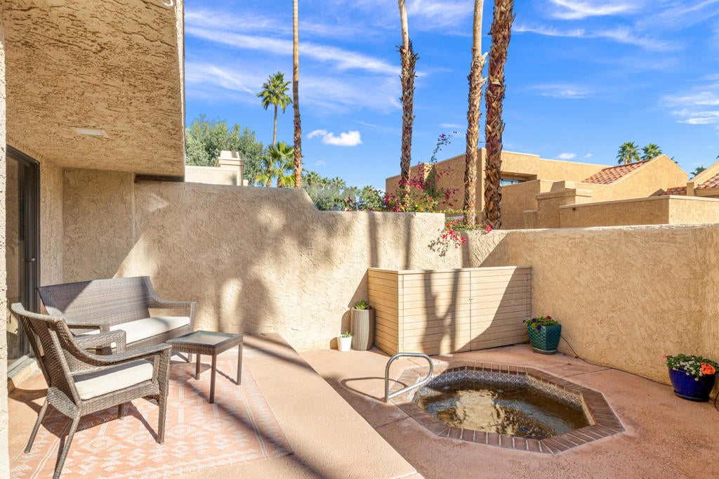 Beautiful Boho-Chic Desert Retreat with Mountain ViewsStep inside this stylish two-story condo offering the perfect blend of comfort, convenience, and desert charm. The main level features an open-concept living space with 24' tile flooring, a spacious great room, and a well-appointed kitchen with laminate countertops and stainless steel appliances, ideal for effortless entertaining.Both bedrooms are located upstairs for privacy, each offering access to upper balconies where you can enjoy spectacular mountain views morning or night. Three bathrooms provide convenience for residents and guests, one located on the main level.A private courtyard patio invites indoor-outdoor living with room to lounge, dine, or relax in your own jacuzzi beneath the desert stars.Additional highlights include a double-car garage and bohemian-inspired furnishings that bring warmth, personality, and style throughout the home.This is a perfect lock-and-leave getaway, seasonal escape, or full-time residence in the heart of the Coachella Valley.Ironwood Country Club is known as one of the valley's top private communities, home to two championship golf courses and a newly updated clubhouse that's the perfect place to gather with friends. From tennis and pickleball to Pilates and an expansive fitness center, the club offers activities for every interest. Membership opportunities are available and provide access to a full array of amenities, social events, golf programs, dining experiences, and recreational facilities. And when you want to venture out, El Paseo is only minutes away -- with art galleries, sidewalk cafes, and designer shopping right at your fingertips.