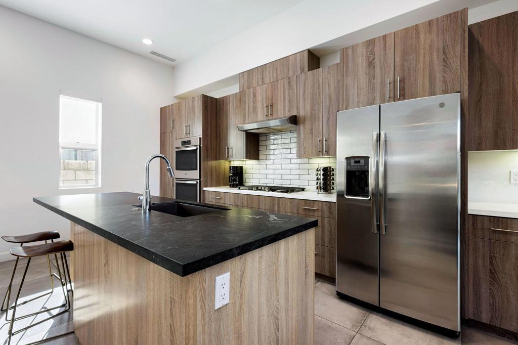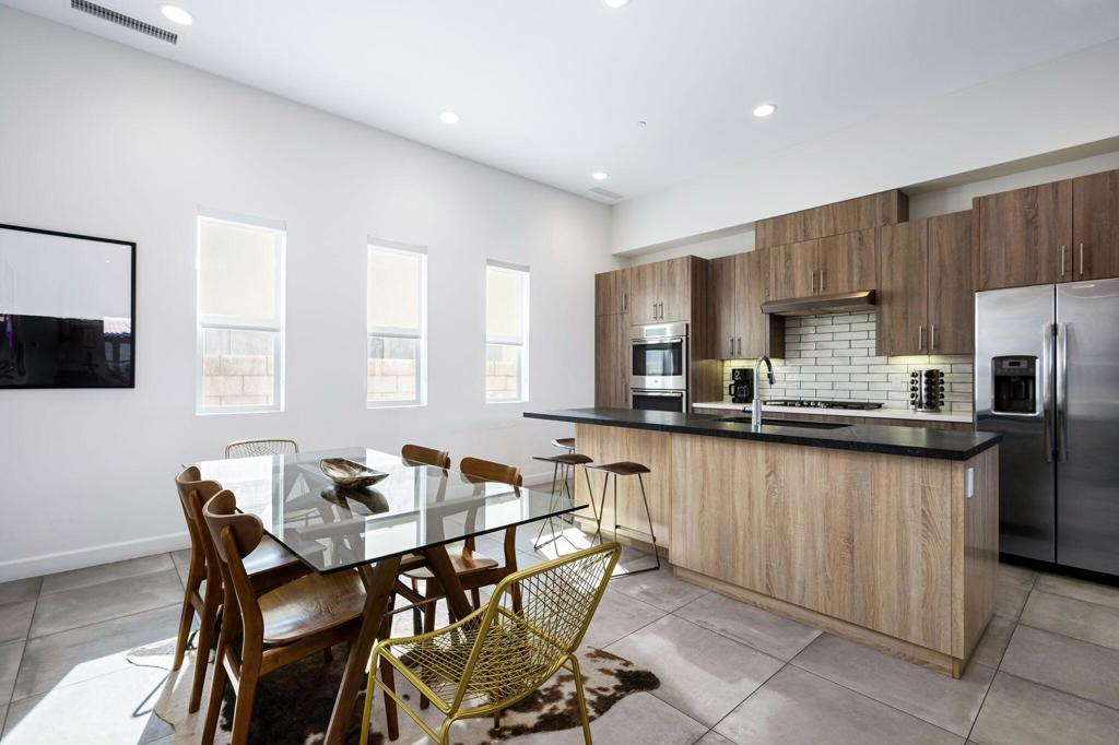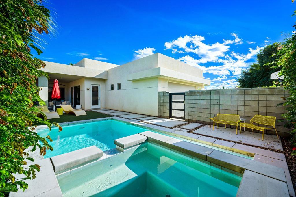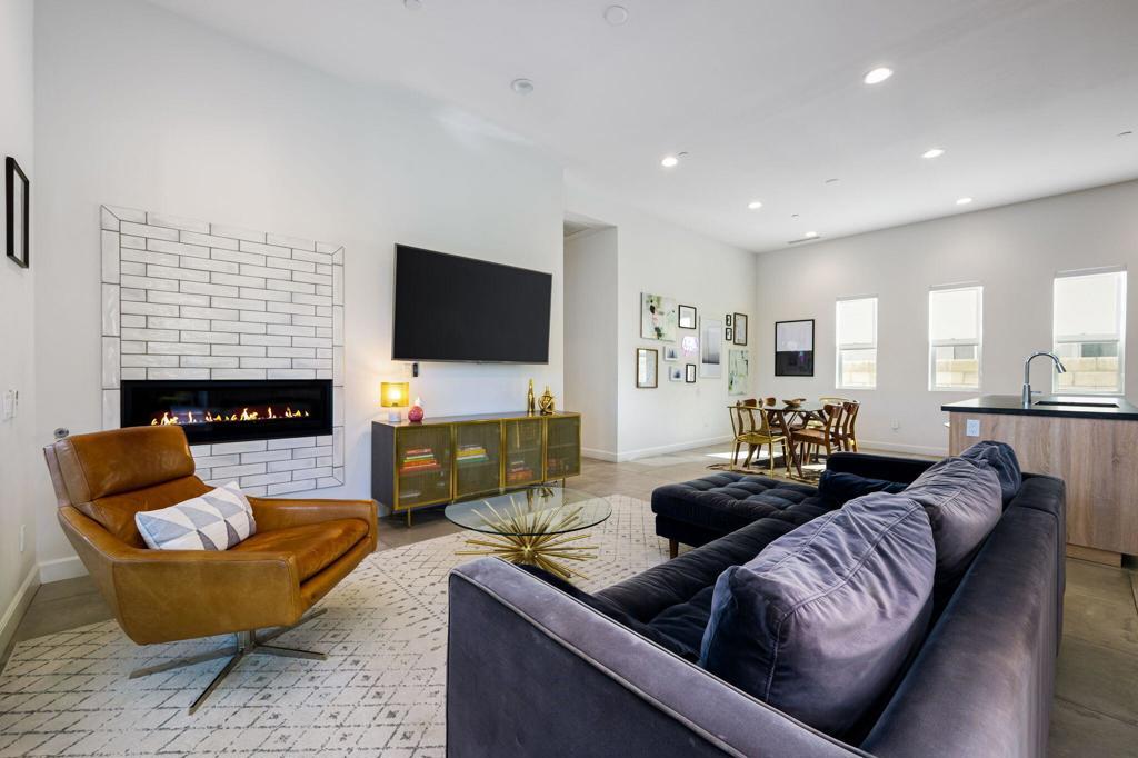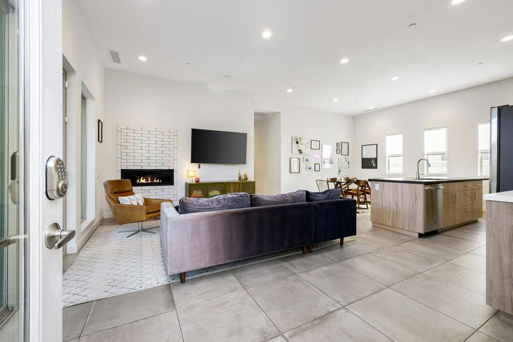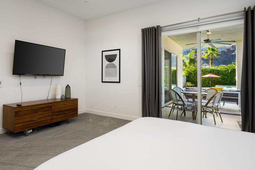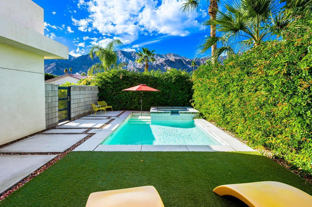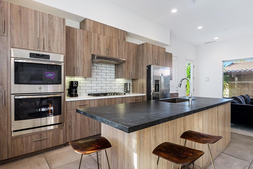 Modern in design and thoughtfully executed, this newer construction residence offers refined desert living in the heart of La Quinta Cove. Built in 2018, the home features a light, bright, and airy interior with an open-concept layout, high ceilings, and large-format ceramic tile flooring throughout. Clean lines, modern cabinetry, and updated finishes create a cohesive aesthetic that flows seamlessly from room to room. The kitchen is designed for both form and function, featuring stainless steel appliances, a gas range, double oven, and an oversized island with an eat-up breakfast bar. Open to the main living space, the kitchen connects effortlessly to the living room, where a gas fireplace adds warmth and architectural interest. Custom window shades and ceiling fans throughout enhance comfort and style. Outdoor living is a defining feature of the home. The west-facing pool and spa, positioned at the front of the property, include a Baja shelf and are heated for year-round enjoyment. Mountain views and low-maintenance landscaping create a private, relaxed setting, while a covered patio extends the living space outdoors. The primary suite offers a walk-in closet and direct access to the covered patio and pool area, reinforcing the home's indoor-outdoor lifestyle. Guest accommodations are well-appointed, including a guest bath with a large soaking tub. Additional features include a dedicated laundry room with washer and dryer, a spacious two-car garage with room for ample storage, security gate, and keyless locks. Ideally located moments from Old Town La Quinta, La Quinta Resort & Spa, dining, shopping, world-class golf, and entertainment. No HOA fees.