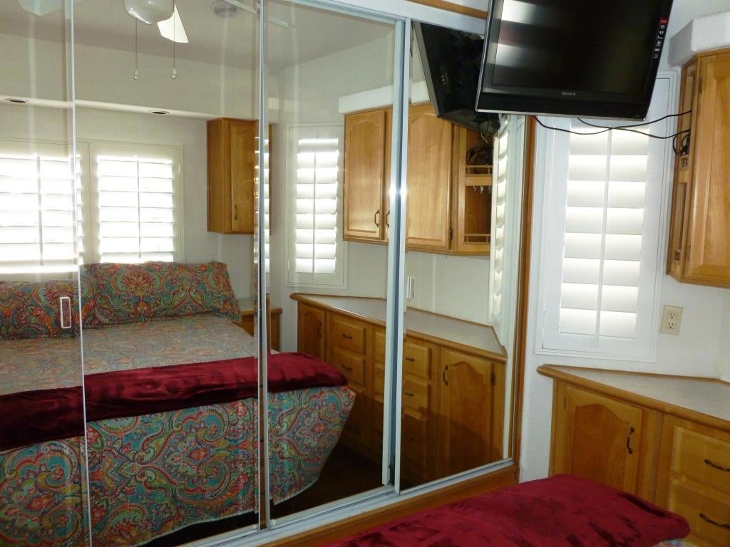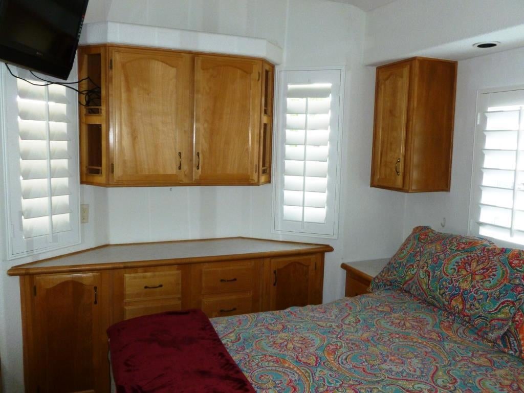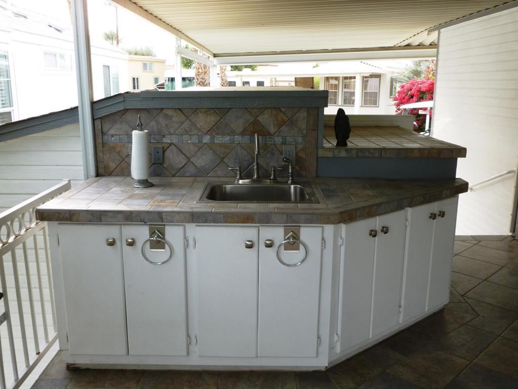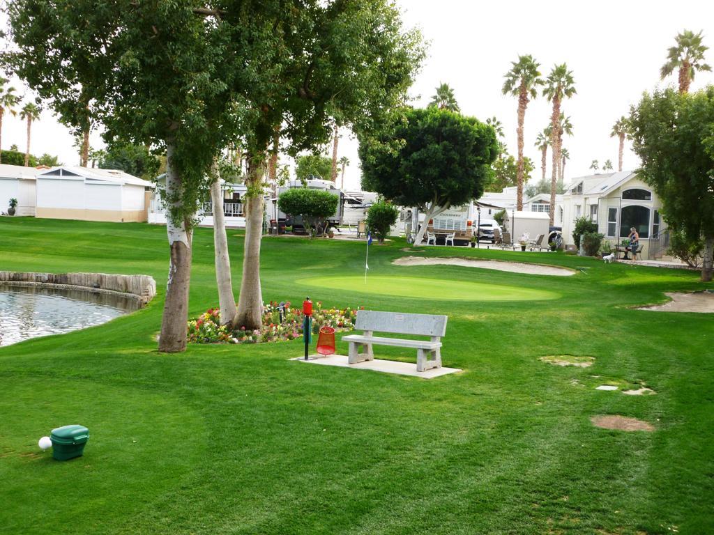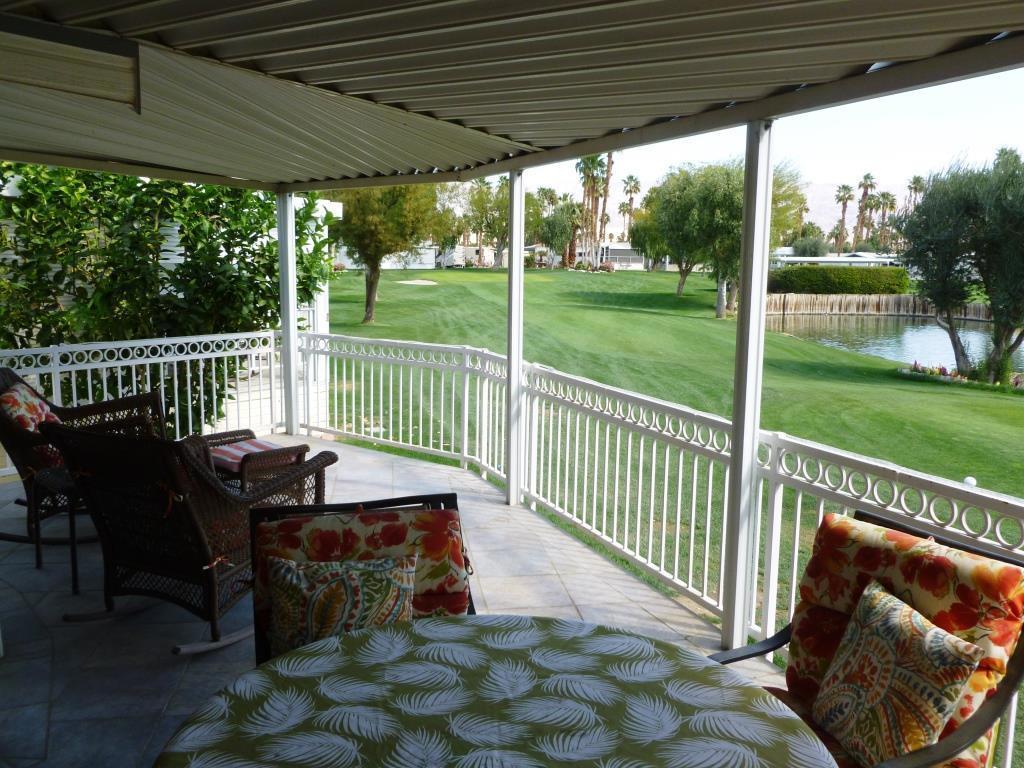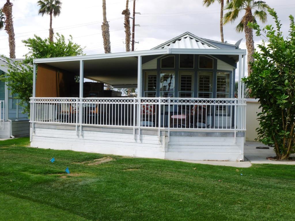 This Park Model is located on the 4th Tee Box with amazing views of the Golf Course, Mountains to the East and Lake in front. Th is Covered Wrap around Tiled Deck offers a W/D, Bar Sink and Patio Furniture. Tiles floors through-out. Custom Cabinetry. This place needs a some upgrading but an awesome location. Stainless Appliances. Large Shed. For those who want to make it their own, this is the place.Rancho Casa Blanca is a 55+ Active Lifestyle Resort Community where you own the land & is perfect for your winter hideaway. Rancho Casa Blanca (RCB) features a beautifully landscaped 80-acre property with 801 individual Park Model homes/or RV sites, Two large clubhouses that function as social hubs & 4 satellite buildings with laundry facilities, mailboxes, heated pools & relaxing spas. As an owner you will enjoy FREE GOLF on your 18-hole par 3 golf course, a 9-hole putting course, 2 practice chipping/putting greens, 6 heated pools/spas, 2 tennis courts, 8 pickle ball courts, shuffleboard courts, horseshoe pitch, fitness center & over 60 Clubs & Classes.