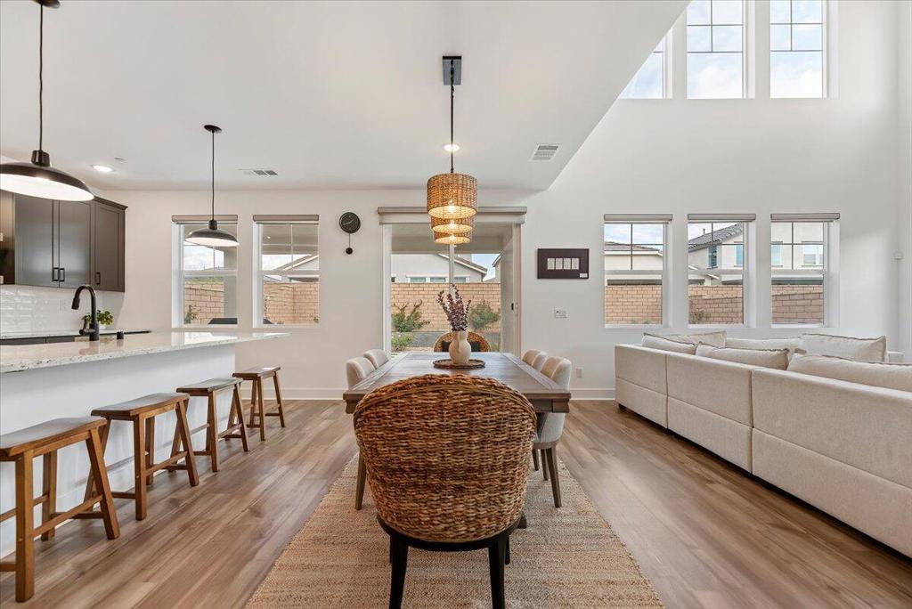 PRICE REDUCTION! Located in the gated community of Aguila at Terra Lago in North Indio, this upgraded newer-build home offers modern desert living with a flexible floor plan, energy-efficient features, and a peaceful setting on a quiet interior street.The layout includes a private office with French doors and a closet, conveniently located next to a full bathroom with shower, making it ideal as a guest bedroom, private workspace, or multi-generational living space. The kitchen features Shaker-style cabinetry, granite countertops, stainless steel appliances, and upgraded flooring throughout the main living areas. Custom window treatments include motorized solar shades for tall windows that never require recharging.Energy-efficient upgrades include fully paid solar panels with bird proofing and a tankless water heater for added convenience and long-term savings. The professionally landscaped backyard offers a covered patio, concrete hardscaping, lush grass, fruit trees, and proper drainage, creating an inviting outdoor space for relaxing or entertaining.Upstairs, a spacious loft provides flexible living space ideal for a media room, playroom, or secondary lounge. The primary suite features dual walk-in closets, dual vanities, a spa-style bath, and beautiful views of the Indio Hills from the primary bathroom window.A move-in-ready home offering modern comfort, efficiency, and flexible living in one of North Indio's desirable gated communities.