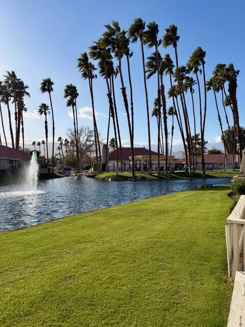 Stunning Lakefront Retreat in Palm Desert! Wake up to sparkling water views in this beautifully situated 2-bedroom, 2- bath condominium offering true lakefront living in one of Palm Desert most desirable resort-style communities. Enjoy seamless indoor-outdoor living with a private patio overlooking the lake- perfect for morning coffee, sunset cocktails, or entertaining friends. The open airy floor plan features abundant natural light, spacious living and dining areas and sliding glass door that frame the tranquil water views.