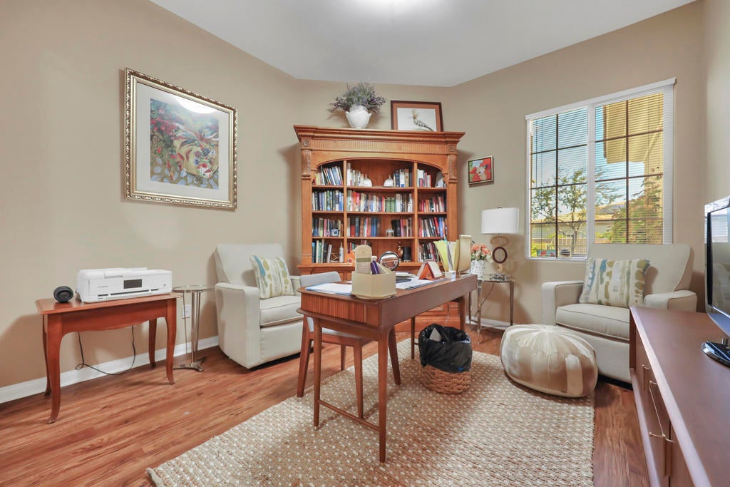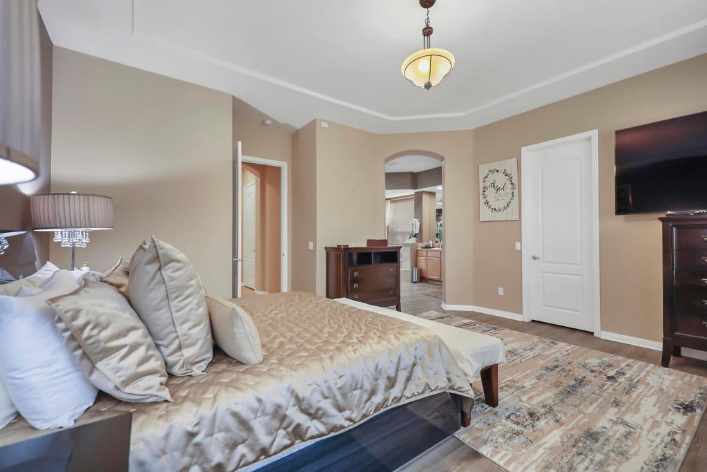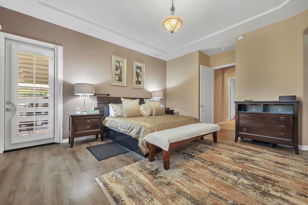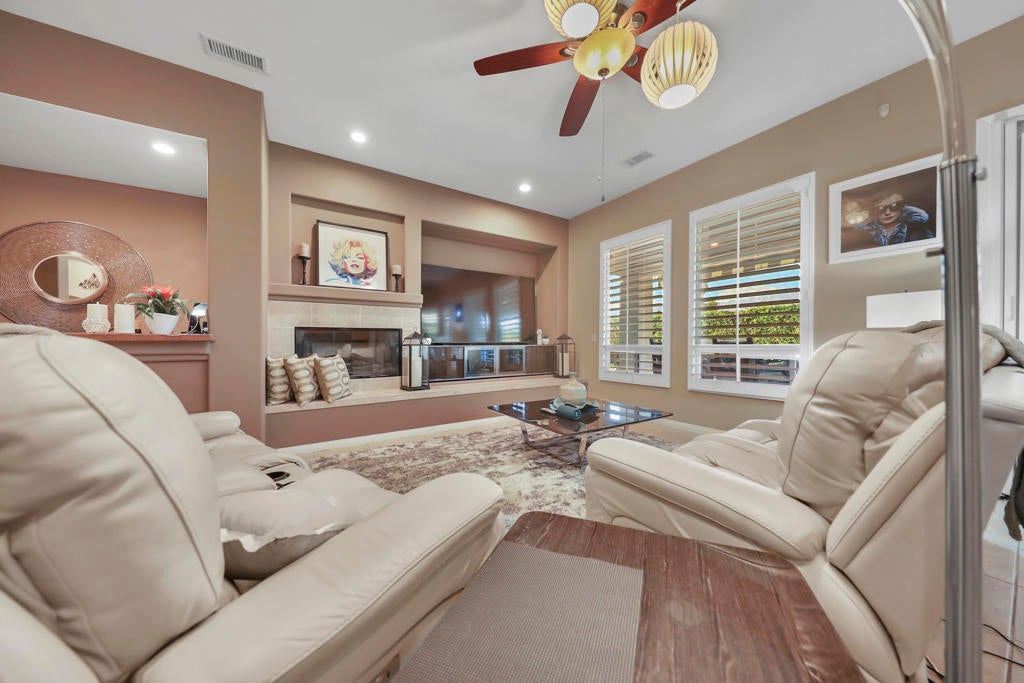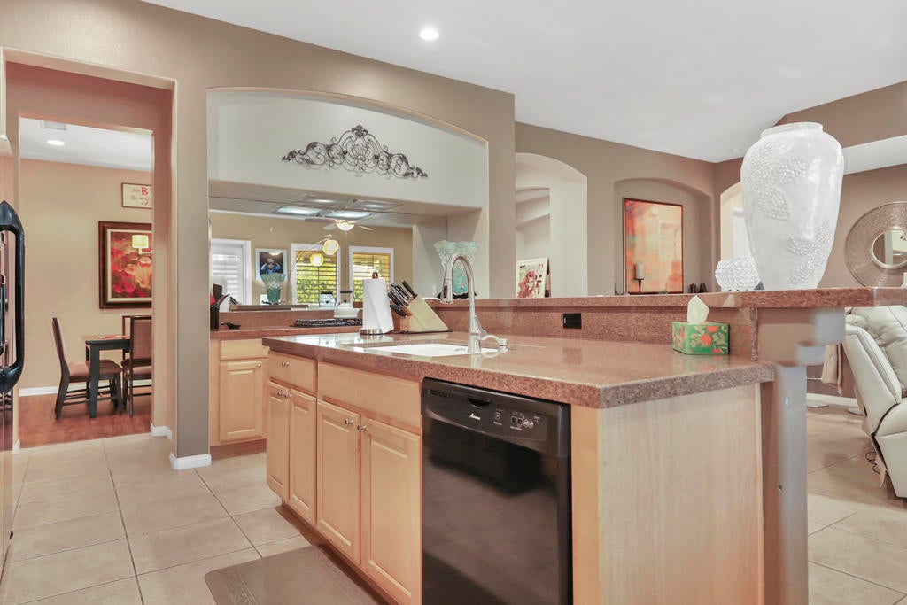 Welcome to this fabulous Tuscany Stunner! . The open layout reveals 2627sq ft of beautifully designed living space, featuring 4 spacious bedrooms and 3 full bathrooms. The gourmet kitchen is a chef's delight, featuring granite counters, pantry, island & entertaining counter, double wall ovens and a separate designer alcove with a 5-burner gas cooktop. Beautiful formal dining room, coffered ceilings, tile and wood laminate flooring, plantation shutters, fireplace and wet bar with seating. Primary master suite has dual vanities plus a make-up table, a raised oval tub, separate glass block walk-in shower, large walk-in closet and door to the patio. Bedroom 2 and 3 share a Jack and Jill shower with dual sinks and mirrored closets. There is dedicated laundry room with sink and a 2 car garage with Epoxy floors. Outside offers a private backyard oasis, featuring a Pebble-Tec saltwater heated pool with raised spa. Only 12 years old!! Covered patio with designer limestone tiles plus an awning offers plenty of shade cover. Dual zone AC and SOLAR paid for!!!!!