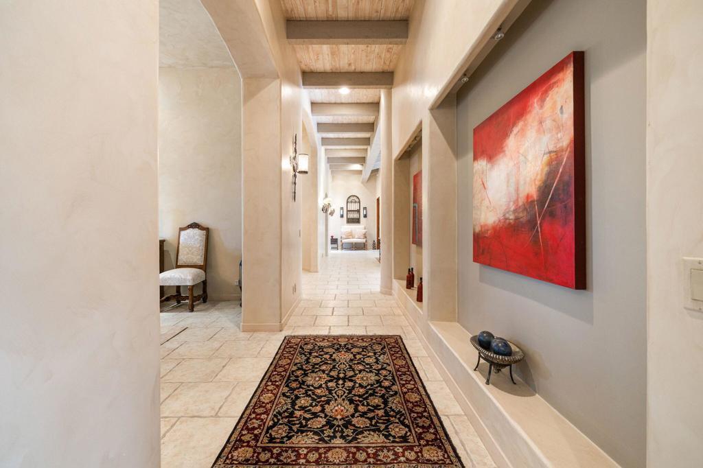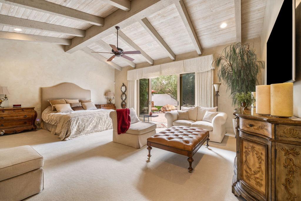 An amazing quality custom home in the heart of Ironwood Country Club just minutes from El Paseo upscale shopping and dining and nextdoor to The Living Desert. Over 5400 sq ft with formal living & dining rooms. Gourmet kitchen with marble island and large side-by-side Subzero fridge, gas range, double ovens, warming drawer and walk-in pantry. The kitchen is open to the family room with fireplace & eating area. Elegant office with built-in desk and bookcases. The spacious primary suite has 2-cedar lined walk-in closets and double marble vanities. Attached casita with dramatic hallway entry has 2 ensuite guest bedrooms and living room. There is also a bonus room that is a perfect art studio or additional bedroom with plumbing in the floor to add a bathroom. Impressive vaulted ceilings and wide hallways with skylights. Outdoor cook center and pool/spa with mountain views. Tile flooring, solid wood doors and carpeted bedrooms. Large Indoor laundry room and 3-car garage + golf cart space. All doors are alarmed for security. Fully owned solar panels. Beautifully furnished and equipped for turnkey ownership. Move right in and begin enjoying this private serene Estate home.