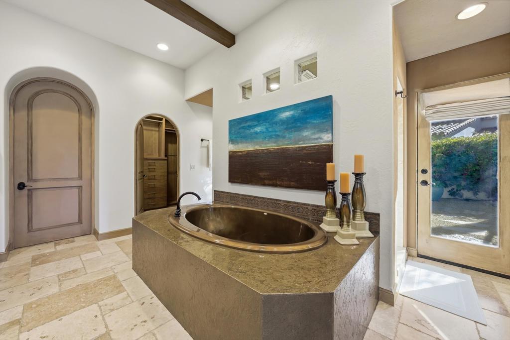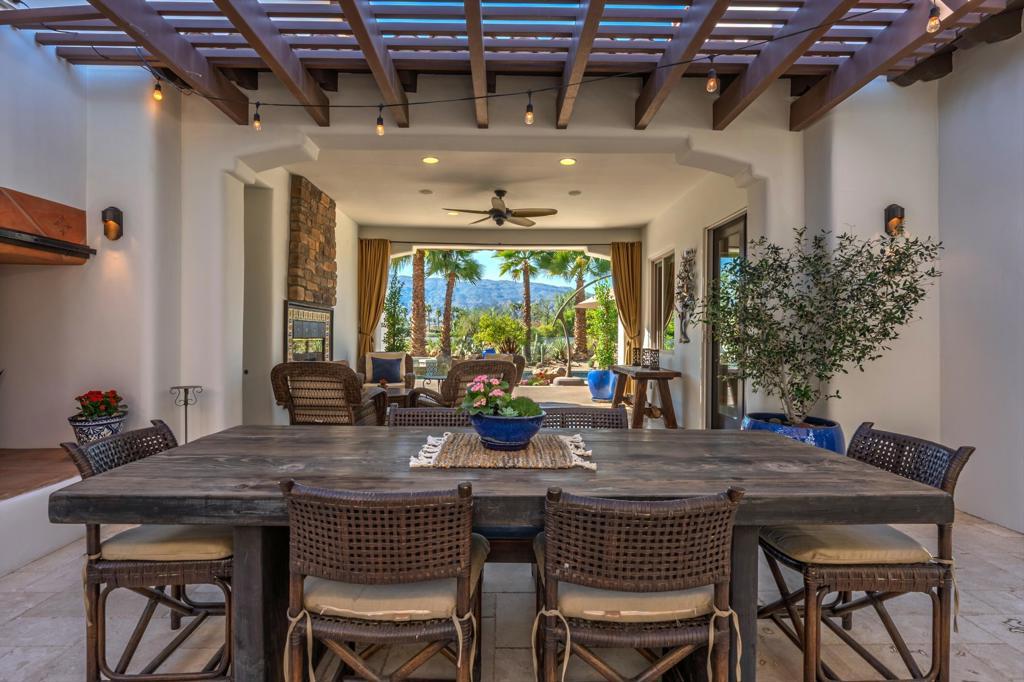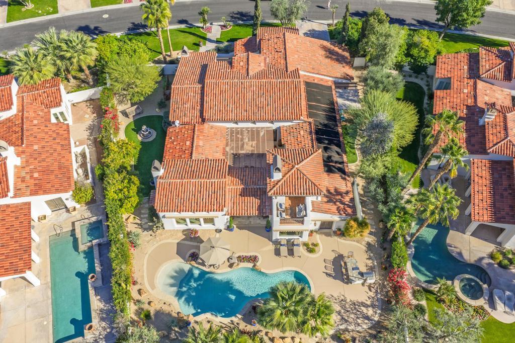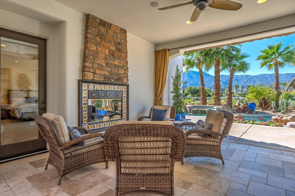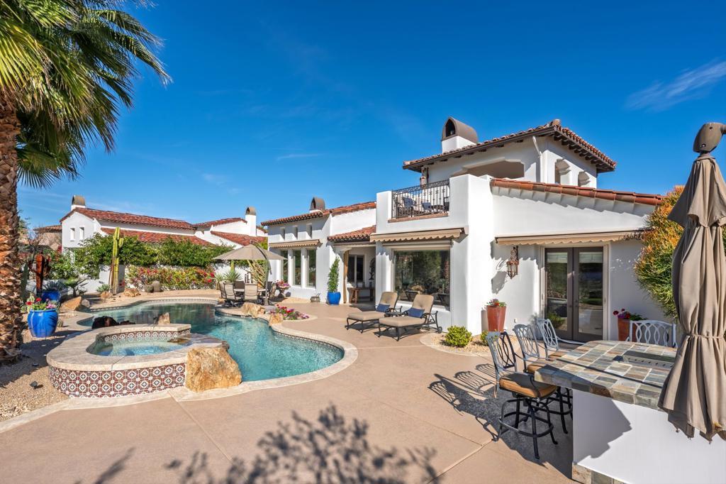 Commanding one of the most coveted southwest-facing views in PGA West, this exceptional residence is located within the exclusive Greg Norman Estates. Set on a rare and expansive 17,860 sq. ft. lot, the property offers unparalleled privacy and extraordinary indoor-outdoor living.Former model home and award-winning architecture, the home features four bedrooms and four baths, with an additional bath thoughtfully converted into a private sauna--creating a true spa-like retreat. Designed for sophisticated entertaining, the resort-style backyard showcases a large pebble-finish pool and spa (new pebble-finish in 2020), an expansive patio with built-in BBQ, and multiple seating areas--all overlooking the 11th fairway of the Greg Norman Course and the dramatic Santa Rosa Mountains.Every outdoor space has been carefully curated: a tranquil seating area surrounded by bougainvillia, an intimate bench outside the guest suite for quiet reflection, and a private interior courtyard with an invited fireplace--perfect for elegant gatherings.Inside, the expansive living room impresses with a striking stacked-stone feature wall, wet bar, and generous dining area. The gourmet kitchen is appointed with granite slab countertops, stainless steel appliances, and a walk-in pantry, seamlessly opening to the family room with fireplace and breathtaking views beyond.The luxurious primary suite is a private sanctuary, offering a fireplace, a spa-inspired en-suite bath with soaking tub, oversized walk-in shower, and dual walk-in closets. An attached casita with its own en-suite bath provides ideal accommodations for guests or extended family, while additional guest bedrooms are thoughtfully positioned to ensure privacy. One bedroom, adjacent to the primary suite, is perfectly suited for a home office, fitness studio, or guest quarters. A potential 5th bathroom currently functions as a luxurious in-home sauna off this guest suite. Above the private courtyard, a stunning balcony with fireplace reveals unobstructed stunning 180-degree views of surrounding mountains and golf course--an extraordinary vantage point for enjoying the desert's renowned sunsets.Ideal as a full-time residence or an exquisite second-home retreat, this remarkable property offers refined desert living at its finest. Offered turnkey furnished per inventory.