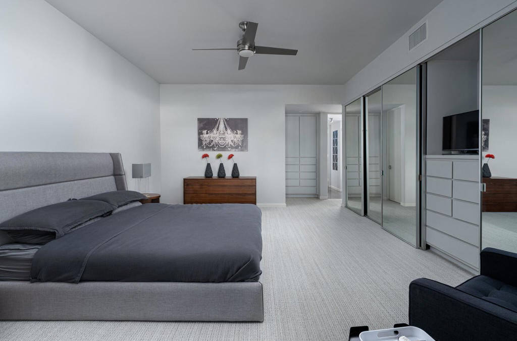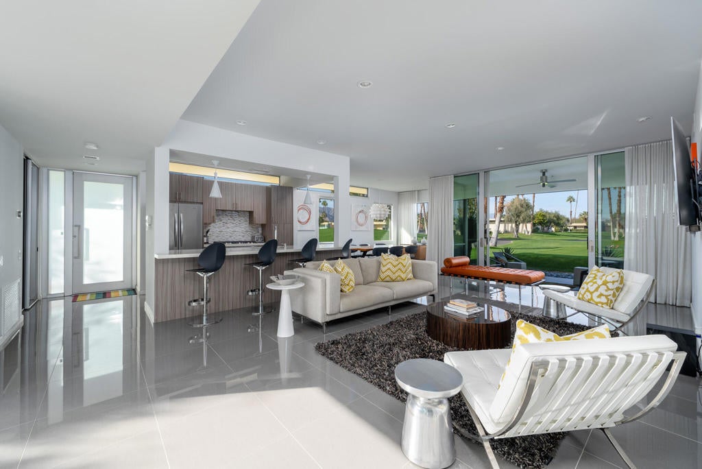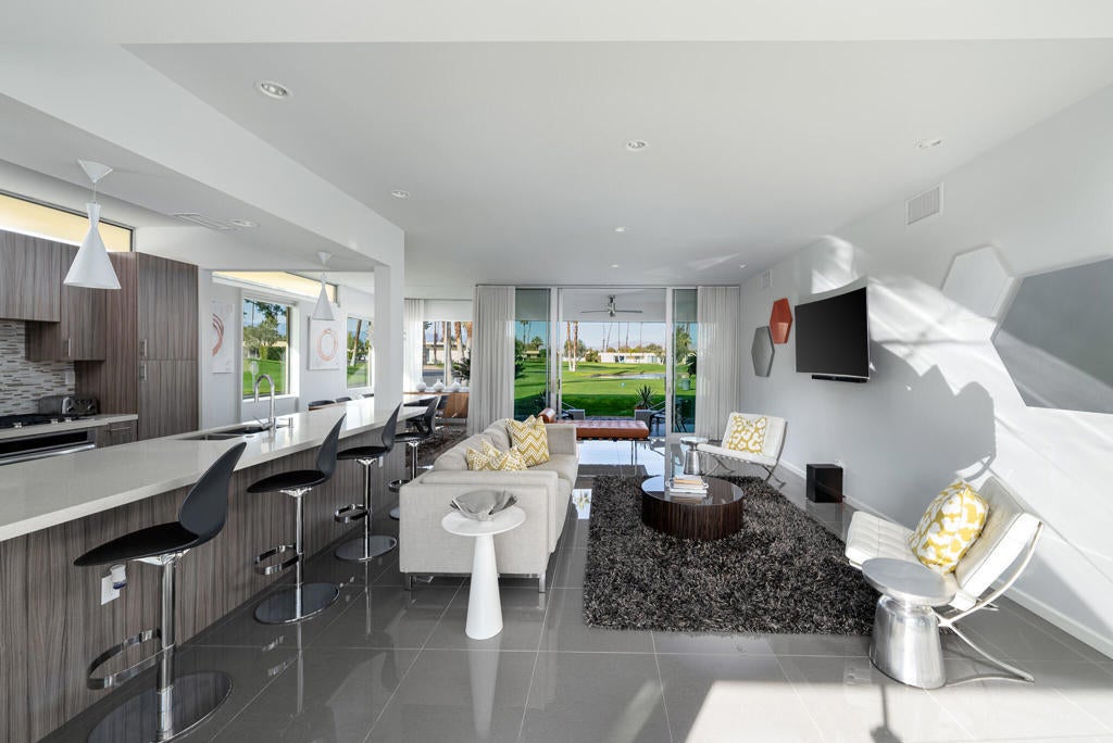 Positioned on the 16th tee and overlooking a tranquil lake, this beautifully renovated two-bedroom, two-bathroom home captures the essence of refined desert living in the heart of Seven Lakes Golf & Country Club.Expansive double-pane windows are thoughtfully placed to maximize light and frame breathtaking western mountain vistas, shimmering water views, and the manicured fairways beyond. The extended dining room adds volume and openness, creating an ideal setting for entertaining while taking in panoramic mountain views from multiple angles. Soaring 9+ foot ceilings enhance the sense of space throughout, while tasteful renovations blend modern comfort with midcentury character.Centrally located within the community, the home enjoys easy walking access to the clubhouse, pools, and social amenities--an ideal balance of privacy and convenience.Community Highlights:24/7 Guard-gated communityWilliam Cody-designed clubhouse with private restaurant, bar, and outdoor dining15 heated pools and spas (seasonal)Tennis and pickleball court18-hole Ted Robinson-designed golf courseElectric car charging stationsOn-site HOA office with general manager and staffCommunity has applied for Historic Preservation under the Mills Act, offering potential California property tax savingsA rare opportunity to own a lakefront, fairway-view home with sweeping mountain backdrops in one of South Palm Springs' most architecturally significant and socially vibrant communities, Seven Lakes Golf and Country Club!
