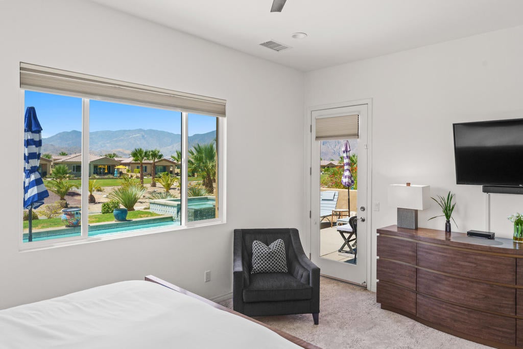 Spectacular views truly set this home apart. Standout vistas of the San Jacinto Mountains set a dramatic tone. Offered fully furnished and exceptionally well priced, this residence presents a compelling opportunity in one of the area's most sought-after communities. The vibrant, gated Desert Princess community offers this home with fee land ownership, providing both peace of mind and long-term value. Built in 2019, the beautifully designed home features an open-concept floor plan with soaring ceilings that make it naturally light and bright. There are 3 bedrooms and 2.5 bathrooms, smart home features, and a whole-house soft water system for added comfort and convenience. Outside your private backyard retreat, a sparkling pool and elevated spa invite you to relax, entertain, and take in the stunning scenery. Enjoy tranquil nights under the stars, creating an unforgettable desert lifestyle experience. A big advantage is the direct backyard access to the stunning greenbelt with nearly 4 miles of scenic walking paths--perfect for morning strolls or evening walks. This is a 24-hour gated, full-service country club offering an impressive array of resort-style amenities, including a 27-hole PGA golf course, pickleball and tennis courts, multiple pools, a newly renovated fitness center, and a beautiful clubhouse with excellent dining. The HOA fee offers exceptional value with a long list of inclusions that enhance your lifestyle and translate into significant savings. All of this, just minutes from the heart of downtown Palm Springs. Ideal as a primary residence, vacation getaway, or investment property--including short-term rentals--this home effortlessly blends comfort, lifestyle, and value. Hurry to see this unmatched opportunity to have the complete Desert lifestyle in one attractive package. Schedule your private showing today!