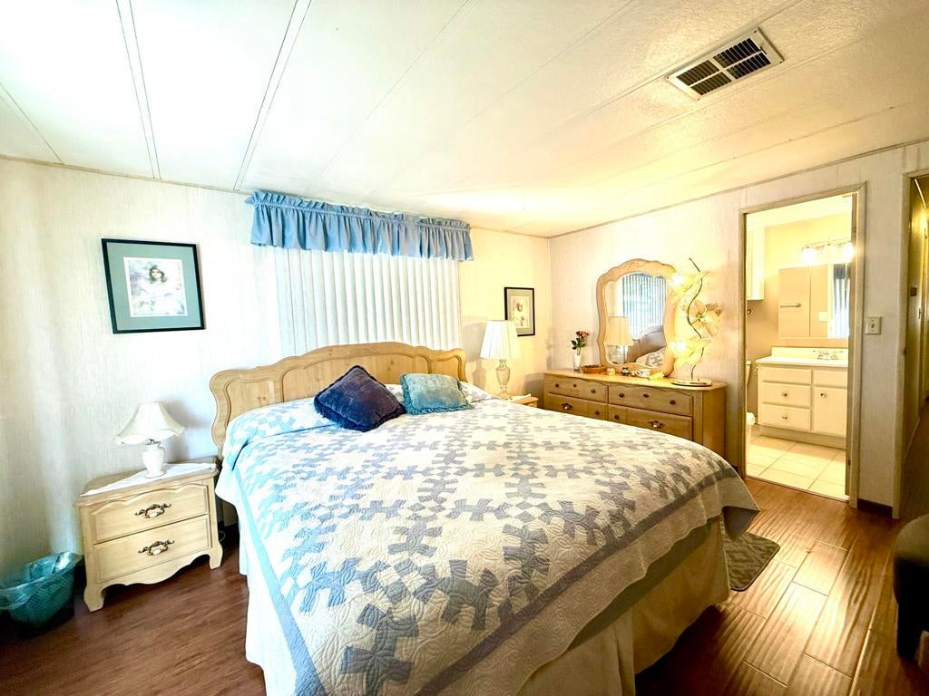 333 Coyote, a 1978 Jefferson manufactured home with 1620 square feet, is a lovingly maintained three bedroom residence, situated on a quiet lot in Royal Palms, a 55+ Manufactured Home community. Entry to this spacious home is from the large, carpeted south facing covered deck, with the front door opening into a large and bright living room which spans the width of the MH.The dining area, with built in cabinetry, is open and opposite the roomy and functional kitchen.A full size W/D sits in the laundry room at the back of the kitchen, next to the leisure door leading to the covered tandem parking carport.A guest bedroom is nearest the living area. A large walk in pantry is near the kitchen.The second spacious guest bedroom opens up to the air conditioned addition of approximately 180 square feet, which also opens to the covered patio.The guest bathroom is located across the hall from the second bedroom.At the west end of the home is the large primary bedroom, with ensuite 3/4 bathroom and walk in closet.Flooring throughout is a uniform laminate, with the exception of the kitchen and laundry room, which are tile, and the addition off the guest bedroom which is carpeted.There is a single large shed for storage, central A/C and heat.This wonderful home is being sold turnkey furnished; space rent for the new owner will be approximately $852 per month. Approval by park management is required to complete purchase.