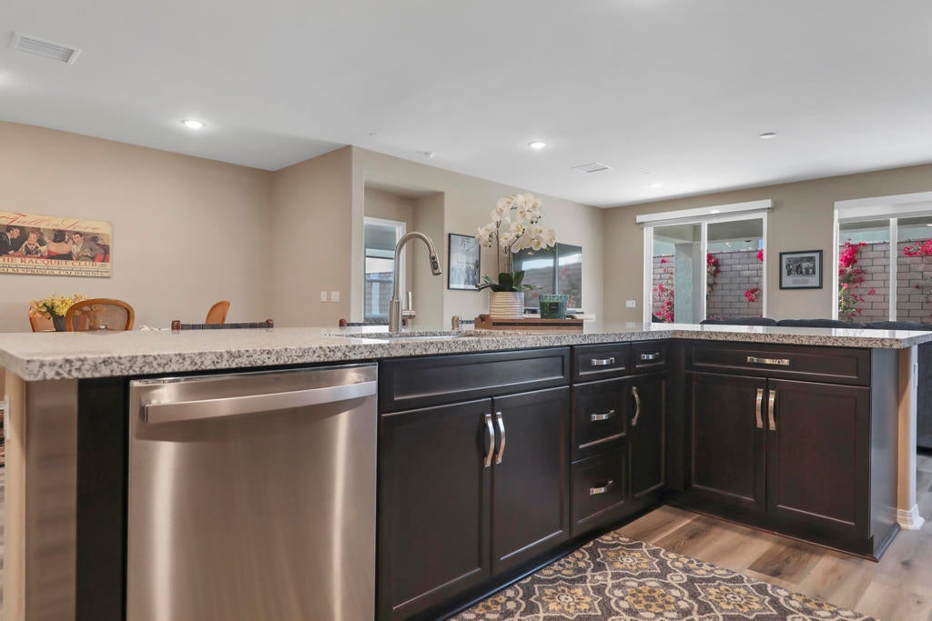 PRICE TO SELL SEND ALL OFFERS!! Discover this Like-New Mecca Hills Floor plan nestled behind the gates of Four Seasons-Terra Lago! This stunning corner lot built in 2021 offers resort-style living at its best. Featuring 2-bedrooms, 2.5 baths, and a versatile den, this beautifully designed home offers a sweeping open concept with a great room and dining area perfect for entertaining. The chef's kitchen delivers a large island, granite slab countertops, stainless steel appliances and walk- in pantry. The spacious primary suite includes plush carpeting, a large walk-in closet, and en-suite bath with dual sinks and a generous walk-in shower. Additional highlights are custom window treatments for added style and comfort, wood-look vinyl flooring throughout except in the bedrooms and den, the primary bedroom and guest bedroom are well separated for privacy and a convenient laundry room with a sink and storage cabinets. Step out into your Beautifully landscaped private backyard featuring a putting green to enjoy! Four Seasons -Terra Lago offers an array of amenities such as an impressive resort-style pool and spa, state-of-the art fitness center, 4 tennis courts, 3 pickleball courts & a half-court for basketball, bocce ball court and much more! Come experience the life-style Four Seasons-Terra Lago offers. You won't be disappointed.