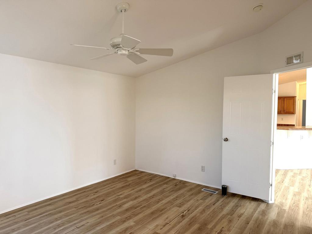 PRICE REDUCTION!!! Welcome to Sky's Haven, a desirable 55+ gated community just minutes from Palm Springs. This beautifully updated 3-bedroom, 2-bath home offers 1,624 sq. ft. of comfortable living with a split floor plan--the spacious primary bedroom is located on the opposite side of the home from the guest bedrooms, providing added privacy.The home has been freshly painted inside and out and features new laminate flooring throughout. The kitchen offers abundant cabinet space, new appliances, and an open layout that flows seamlessly into the living and dining areas. Additional highlights include an individual laundry room with washer and dryer, low-maintenance landscaping, and a storage shed for added convenience.This 2005-built home is situated on a PERMANENT FOUNDATION with a recorded 433(A), making it eligible for traditional financing.Sky's Haven offers fantastic amenities including a clubhouse, pool, and spa--perfect for relaxation and social activities. Conveniently located near shopping centers, restaurants, banks, and more. A wonderful opportunity to enjoy affordable desert living in a well-maintained community.