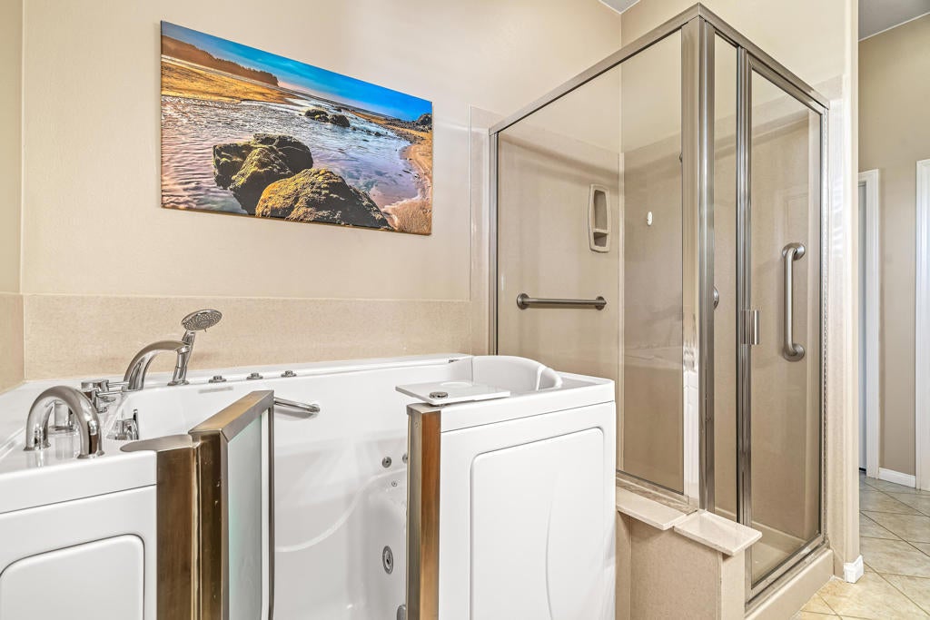 Move-in ready home in Heritage Palms. Featuring a large usable front courtyard, beautiful leaded glass entry door, granite kitchen counters, plantation shutters, dramatic stacked stone family room wall with fireplace and large laundry room with sink . The primary bedroom has a sliding patio door to your private rear yard, separate shower with custom jetted walk-in soaking tub, dual vanities and walk-in closet. Addition upgrades include an oversized/deep garage with epoxy flooring and individual A/C unit. FURNISHINGS AVAILABLE. Heritage Palms is a premier adult community featuring an 18 hole championship golf course, pickleball & tennis courts, fitness center, grill room, billiards room, card rooms, social clubs and more.