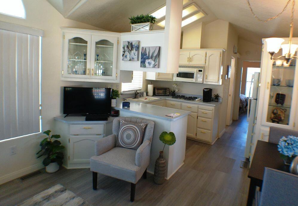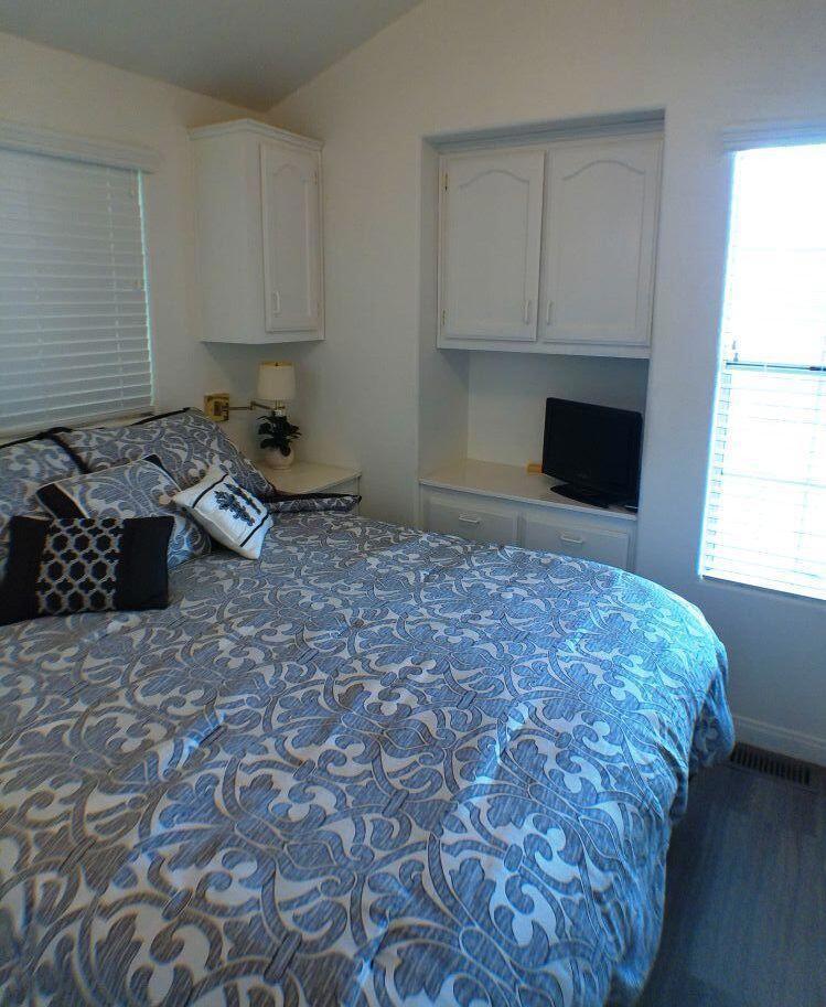 Park Model located close to the front entrance, Enclosed Deck with Automatic Shutters, Rod-Iron Railing, Walk-Thru Bathroom, Dual Sink & Garbage Disposal, 32' Vizio TV, GE Refrigerator & Dishwasher, GE Profile Microwave & Convection Oven, Kenmore Washer / Dryer, Hardwood Laminate Flooring, Large 10 x 10 Shed, Golf Cart Included. Close to Clubhouse 1 Pool & Spa Facilities. Rancho Casa Blanca Resort is a 55+ Active Lifestyle Resort Community where you own the land & is perfect for your winter hideaway. Rancho Casa Blanca (RCB) features a beautifully landscaped 80-acre property with 801 individual Park Model homes/or RV sites, Two large clubhouses that function as social hubs & 4 satellite buildings with laundry facilities, mailboxes, heated pools & relaxing spas. As an owner you will enjoy FREE GOLF on your 18-hole par 3 golf course, a 9-hole putting course, 2 practice chipping/putting greens, 6 heated pools/spas, 2 tennis courts, 8 pickleball courts, shuffleboard courts, horseshoe pitch, fitness center & over 60 Clubs & Classes.