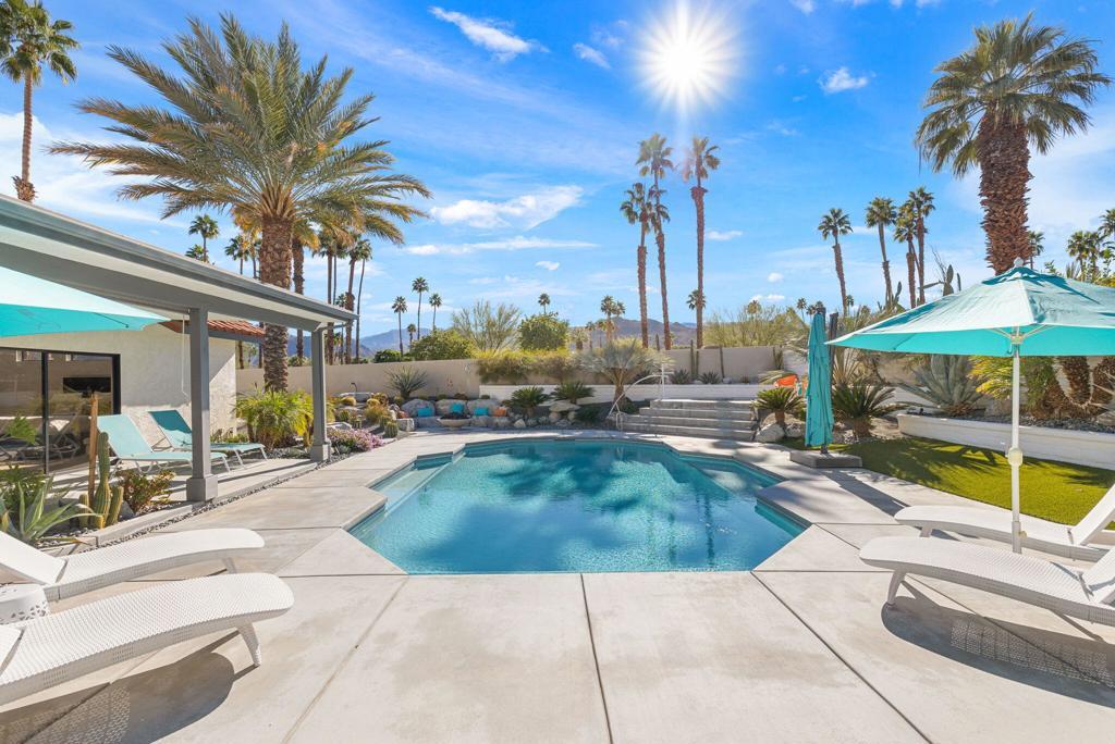 Desert Living - Luxury Redefined at a New PriceFURNISHED PER SELLER'S INVENTORY. Completely reimagined custom home with million-dollar panoramic views. This exceptional 3-bedroom, 3-bath residence with a den offers approximately 2,700 square feet of thoughtfully curated living space on an expansive one-third-acre lot.Designed for both comfort and sophistication, the home features generous proportions, elevated finishes, and seamless indoor-outdoor living rarely found at this level. Nearly everything has been updated since 2021, creating a true turnkey opportunity.The interior showcases new engineered wood flooring, new tile, freshly painted interiors and exterior, and all-new window treatments. Both secondary bathrooms have been completely remodeled, while the primary suite has been enhanced with new windows for improved comfort and energy efficiency. The kitchen has been fully renovated with custom cabinetry, quartz countertops, and top-of-the-line appliances, and is complemented by a new washer, dryer, and water softener.Major systems and exterior improvements have been comprehensively addressed. THE BACKYARD ALONE HAS UNDERGONE AN OVER $300,000 RENOVATION, INCLUDING A COMPLETELY REDONE POOL, ALL NEW CONCRETE, AND A FULL LANDSCAPE REDESIGN COMPLETED IN 2021. Additional concrete work extends throughout the property, with the entire side yard rebuilt in October 2025.Flat roofs were replaced in 2025, and the clay tile roof has been professionally inspected and confirmed to be in excellent condition. The water heater and furnace are both brand new as of 2025. Additional upgrades include all-new M-Tech door hardware, a new garage door, and epoxy-coated garage floors completed in 2021.Enjoy privacy, space, and breathtaking views in a well-maintained community with an exceptionally low HOA of just $267 per month. This is a rare opportunity to own a meticulously upgraded home that perfectly blends style, scale, and scenery.