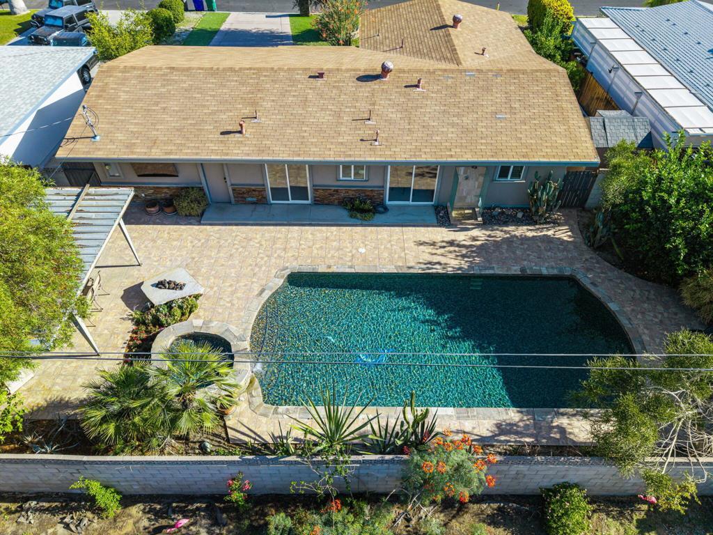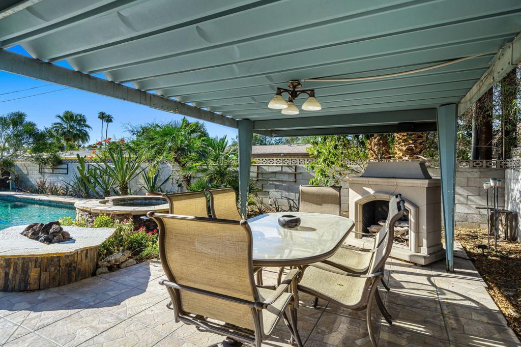 Quaint mid century pool home with no HOA! This three bedroom, two bathroom Cathedral City home is Rancho Mirage adjacent located off DaVall. The spacious lot features lush green turf which offers low maintenance and a resort like backyard with fire pit, pool & spa, and covered patio with fireplace Inside you'll find a functional floor plan ready for your cosmetic enhancements! Great opportunity in a great location.