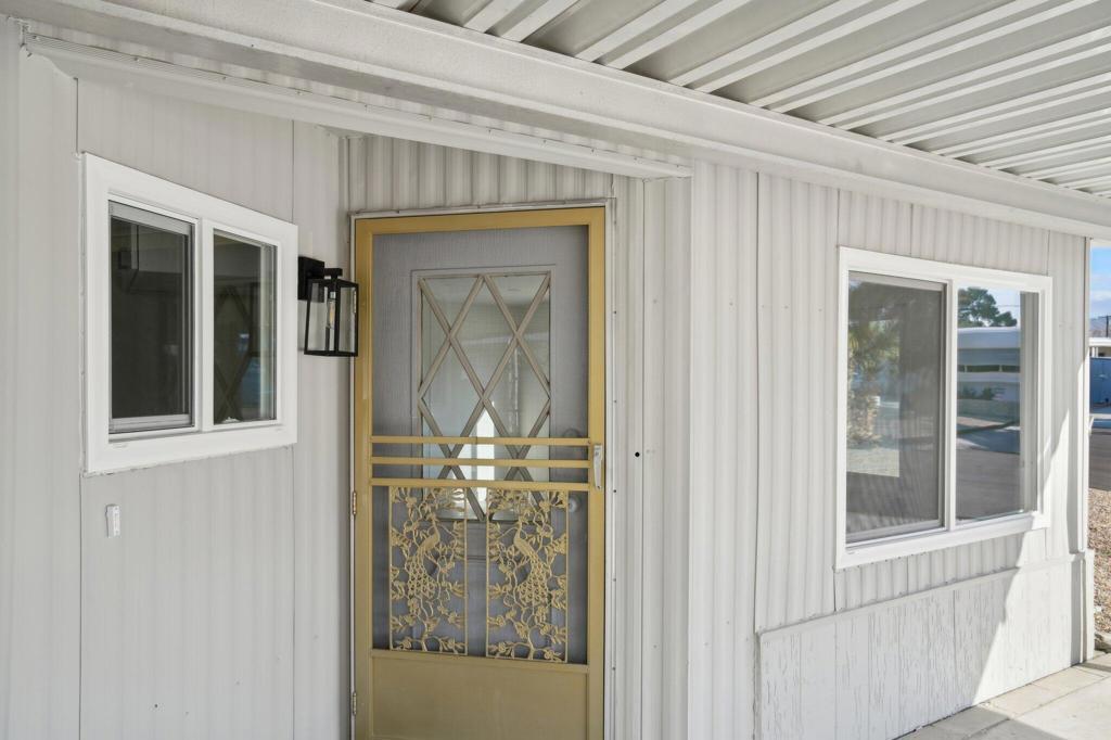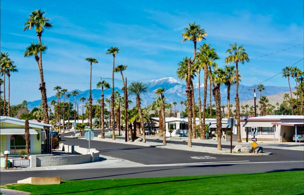 COMPLETELY REMODELED interior with fresh, modern finishes throughout! This beautifully updated home features an open-concept kitchen and family room with a glass slider that leads to a spacious covered patio--perfect for indoor-outdoor living. Enjoy stylish vinyl flooring, quartz countertops, stainless steel appliances, energy-efficient windows, and recessed lighting throughout. The primary suite includes a private bath and a large walk-in closet, while the guest suite offers direct access to the hall bath. Additional features include a separate laundry room, an extra-wide side-by-side two-car carport with additional storage, and a rear yard with a bonus storage shed. Best of all, you own the land with low annual HOA dues. The 433A Permanent Foundation allows for Conventional, FHA/VA, and Reverse Mortgage financing. Located in the sought-after Tri Palm Estates and Country Club, a vibrant 55+ community, your low monthly fee includes unlimited golf for two deeded owners on the 18-hole executive course and the 9-hole par-3 course. Residents enjoy two outdoor pools and spas, lighted tennis and pickleball courts, shuffleboard courts, two practice putting greens, and a beautifully maintained clubhouse with dining, banquet space, and a social lounge bar. The community also boasts a full calendar of social events. Conveniently located near I-10, Costco, Sam's Club, Home Depot, Walmart, Lowe's, movie theaters, and a wide range of restaurants. Just minutes from Agua Caliente Casino, Acrisure Arena, and the upscale shops of Rancho Mirage and South Palm Desert. Plus, you're within the IID electric service area, offering lower utility bills!
