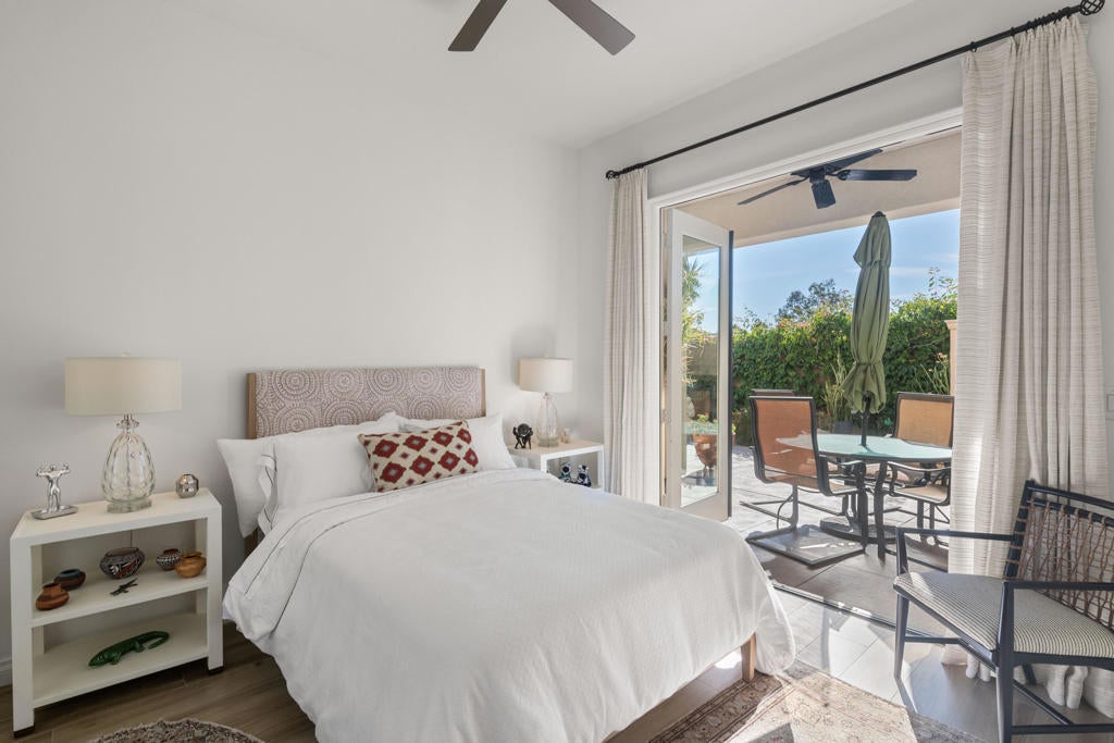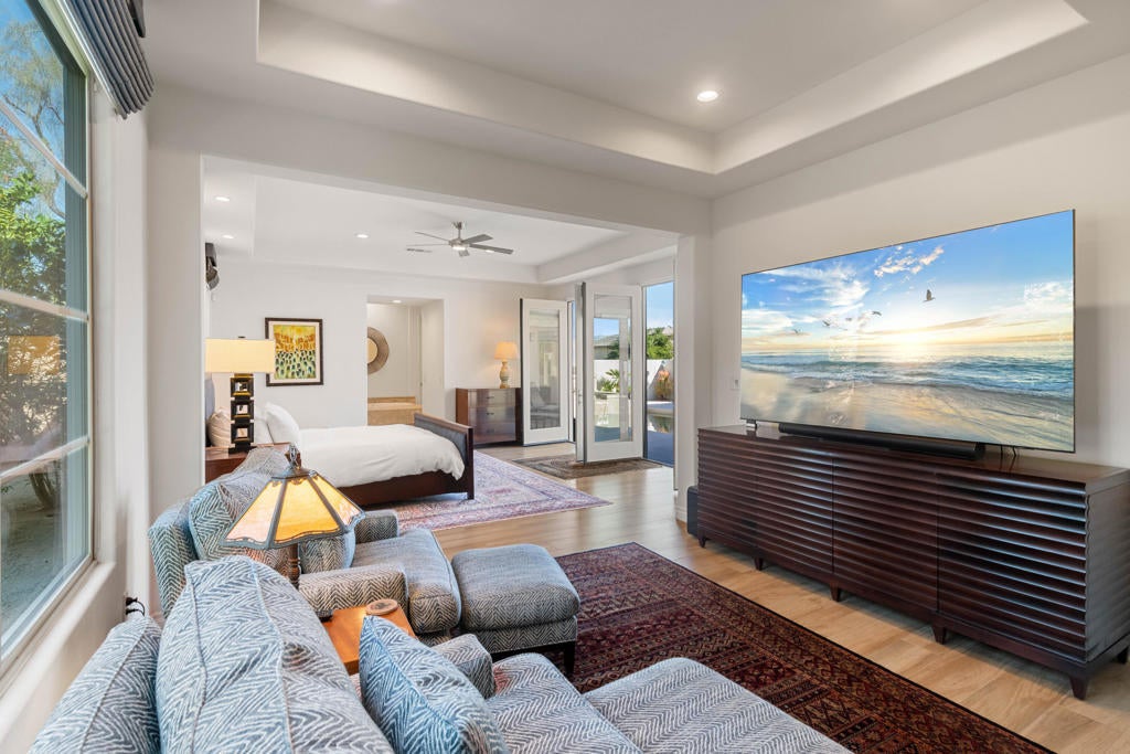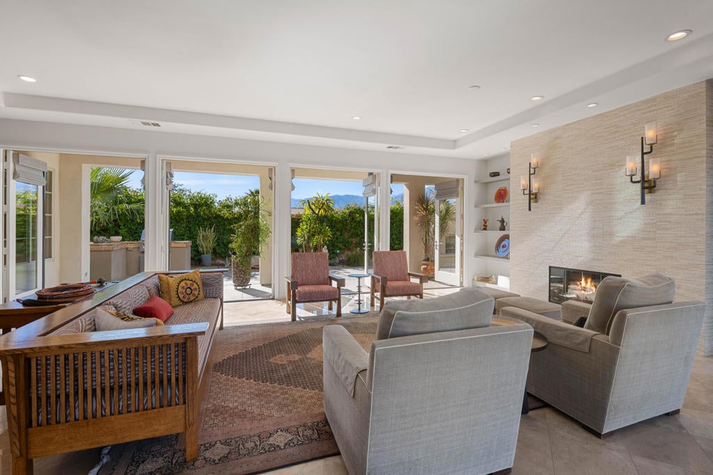 This is a must see! A stunning contemporary property in the Enclave at Sunrise, a walled community of 52 luxury homes in beautiful Palm Springs. The extensively updated residence combines a very well-designed environment for both entertaining and daily living with many visually appealing elements of charm throughout. When first approaching the house one is greeted by a gated, walled and large private courtyard. On the way to the front entry visitors pass a large, front-loaded swimming pool, spa and water features. Built in 2006, the home offers an inviting interior beginning with the great room and the visual impact of walls of French doors on two sides of the room that provide a source of light and indoor/outdoor desert living. The ceilings are tall throughout the house. The open concept floor plan includes 4 bedrooms, 4.5 bathrooms, 2 fireplaces (one outside) and beautifully updated kitchen and bathrooms. The large kitchen island, new cabinets, new granite counters and backsplash, newer stainless steel appliances including double ovens, and large pantry make the kitchen an enjoyable hub of the house. The primary suite has so much to offer including a relaxing retreat for unwinding with a good book or watching television, a large double entrance walk-in closet, a spa tub and beautiful view and easy access to the private courtyard with its water features and pool. Another ensuite bedroom as well as 2 others, all with pleasant views, are available for family and guests. One of the bedrooms is currently used as an attractive library/office. Newer custom shades and drapes have been installed throughout the house. The attractively landscaped yard includes beautiful mountain views, citrus trees, a fireplace and outdoor kitchen. The extensive list of updates since 2022 incudes 2 new ac units and furnaces, water heater and a water softener. The total costs of all updates from 2022 through 2025 is $260,000. The lists of all improvements and the maintenance summary and updates for pool, spa and fountain are available. With all of these updates already completed, this elegant residence is move-in ready awaiting the new owners.