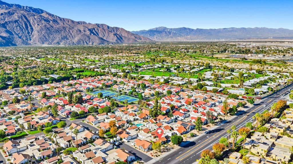 Private, peaceful location, nestled in the prestigious Canyon Sands community, surrounded by picturesque desert landscaping! This beautifully updated single-story home is bright and inviting, with expansive floor-to-ceiling windows that fill the living space with natural light. Vaulted wood-beamed ceilings and a cozy fireplace add character and warmth to the open living and dining areas, creating a space perfect for relaxing or entertaining. The kitchen has been thoughtfully remodeled with quartz countertops, modern cabinetry, and all the features a chef could desire. Both bedrooms are spacious, with the master suite opening to a tranquil courtyard complete with a personal citrus tree. Plantation shutters, ceiling fans, and recent upgrades add comfort and convenience throughout the home. Canyon Sands offers a resort-style lifestyle with multiple sparkling pools and spas, lighted tennis courts, saunas, and beautifully landscaped walkways. Low HOA fees and a location just minutes from shopping, dining, and Palm Springs Airport make this home ideal as a first residence, retirement retreat, or investment property. With its combination of light-filled spaces, practical updates, and location, this Canyon Sands home is ready to welcome its new owner.
