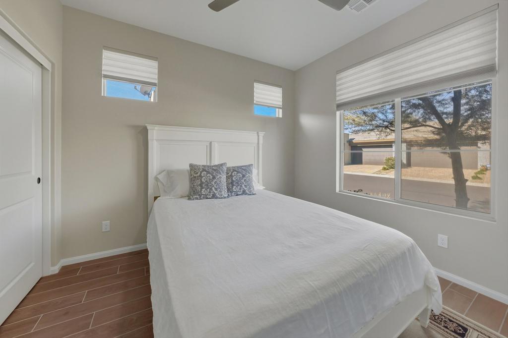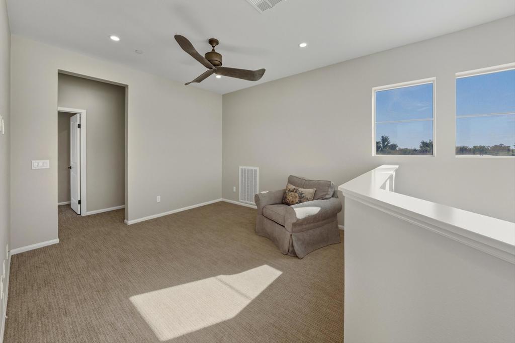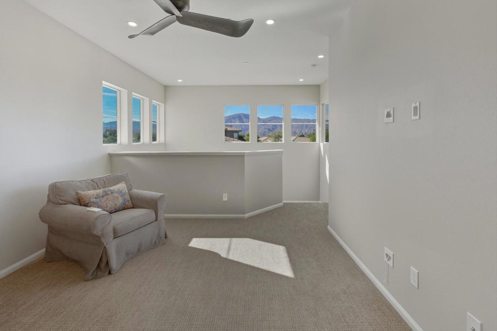Upgraded Muros Model with Loft (4 BR / 3BA + Storage Room | 2,156 Sq. Ft.) Located in Close Proximity to the Clubhouse. The main level features 2 bedrooms with 2 baths at opposite ends of the home and wood-like tile flooring throughout. The upstairs is perfect for visiting friends and family, featuring a cozy living area, 2 additional bedrooms and guest bath. The generous kitchen features upgraded cabinetry, quartz countertops and stainless steel appliances. The comfortable great room with plantation shutters offers warm, natural light and a sliding door to the sunny Southeast facing covered patio. This gently lived in and well maintained home is perfect for those looking for a desert retreat with minimal maintenance and ample space to host family and friends. This home is located in the 55+ Resort Collection of Trilogy at the Polo Club. Membership is available for transfer. Click the virtual tour link for a Virtual Walkthrough.