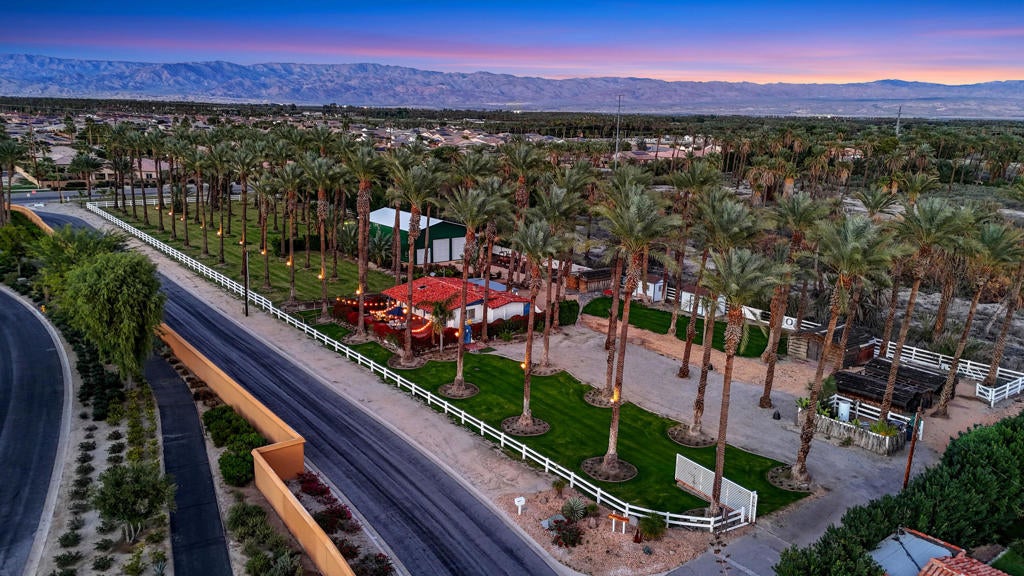 Welcome to Harvest Moon Ranch, a Hidden Gem on Acreage in Coveted La Quinta! A rare opportunity to own a truly unique property set on 2.24 acres with beautiful mountain vistas of the Santa Rosa Mountains. This charming hacienda-style retreat blends privacy, natural beauty, and lifestyle, creating an ideal escape for outdoor and recreation enthusiasts. Wander the grounds beneath approximately 100 mature date palms, take in unforgettable sunrises and sunsets, and enjoy the freedom of wide-open space rarely found this close to everything. The setting feels secluded and peaceful, yet never remote.The property includes an impressive workshop featuring an indoor pickle-ball court, along with ample space for cars, RVs, and boats. With expansive acreage and a versatile layout, the land may allow for a custom estate, or additional residences similar to the existing home--offering outstanding potential for multigenerational living, income opportunities, or long-term value. Located just steps from Andalusia, PGA West, The Palms, and The Quarry, and only minutes from world-class golf, tennis, polo, dining, and shopping. This is a rare blend of space, privacy, and proximity--an exceptional property with endless possibilities. See Land Listing MLS# 219144404