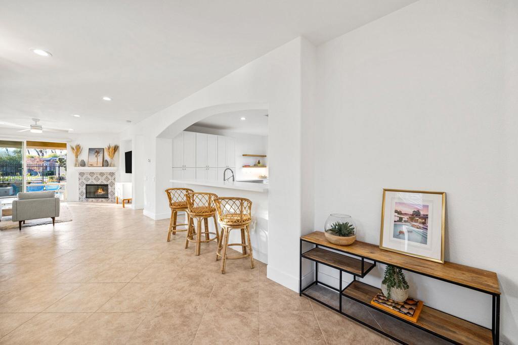 Turnkey Short-Term Rental Opportunity! Welcome to an exceptional income-producing opportunity in the gated community of Indian Palms Country Club. This newly updated 3-bedroom, 2-bath home is sold fully furnished and thoughtfully designed for short-term vacation rentals, entertaining, and effortless desert living. The open-concept floor plan features a modern desert aesthetic with abundant natural light and seamless indoor-outdoor flow. The newly remodeled kitchen showcases stylish finishes and opens directly to the dining and living areas and is ideal for hosting guests and maximizing rental appeal. Step outside to a private backyard retreat designed for resort-style enjoyment, complete with a new saltwater pool and spa, firepit with seating area, and covered patio for year-round use. The indoor living spaces and outdoor amenities together create a highly desirable setup for Airbnb and VRBO guests. The primary suite offers direct pool views and a spacious en-suite bathroom with dual vanities, walk-in shower, separate soaking tub, and walk-in closet. Two additional guest bedrooms are well-separated for privacy and comfort. Additional features include a dedicated laundry room with storage, a two-car garage, and a separate golf cart garage. This smart-enabled home includes integrated controls for the pool, spa, thermostat, garage door, and doorbell camera, ideal for remote management. Indian Palms Country Club offers resort-style amenities including a 27-hole golf course, fitness center, pickleball and bocce ball courts, and three community pools. Short-term rentals are permitted, and low HOA dues enhance the property's investment potential. Located close to the Empire Polo Grounds, home of the Coachella and Stagecoach music festivals, this is a rare opportunity to own a turnkey short-term rental in one of the Coachella Valley's most sought-after locations.