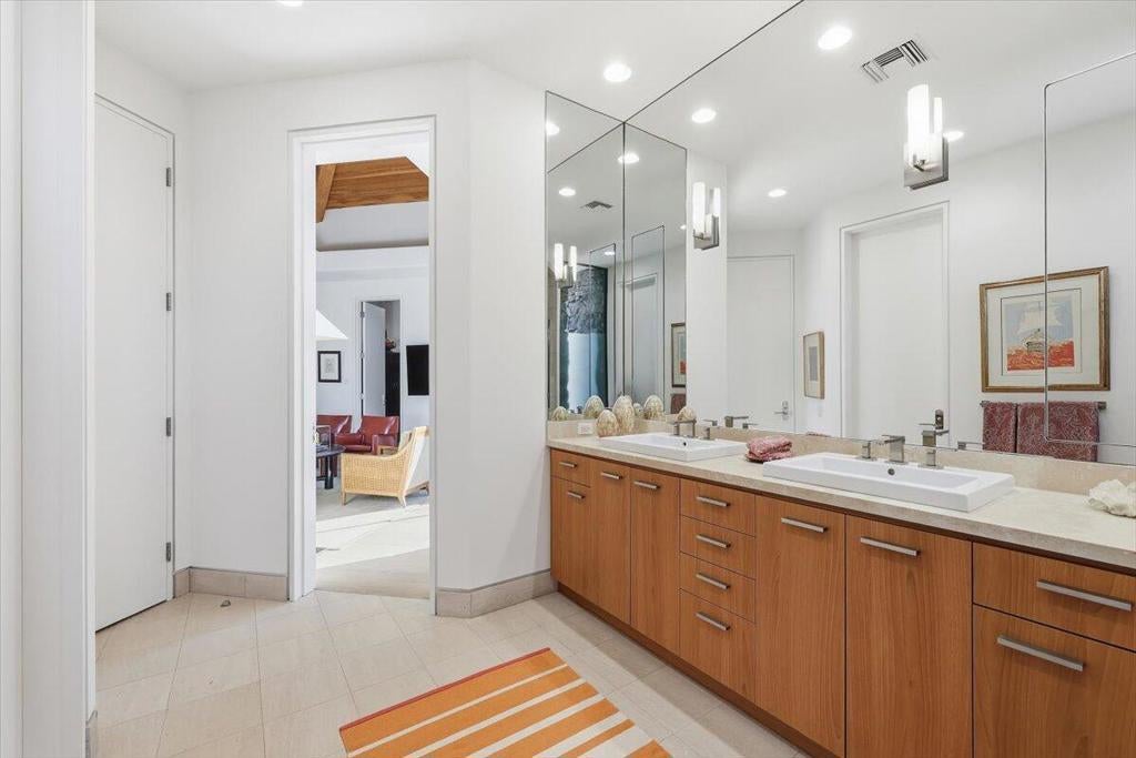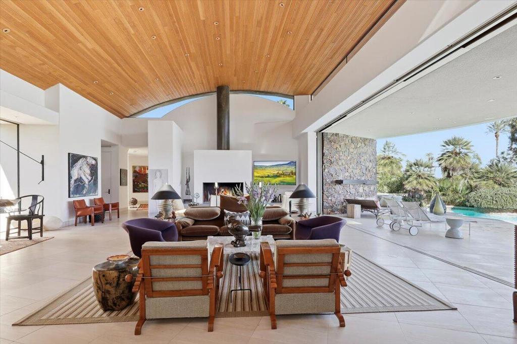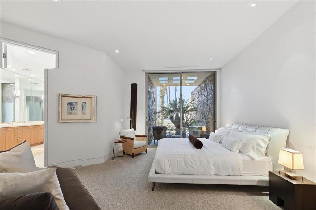 Waterfront Oasis with FULL SOLAR POWER! As the ultimate expression of the world-renowned Rancho Mirage lifestyle, this exceptionally luxurious estate presents a rare opportunity in the intimate guard-gated enclave of Waterford. Crafted by Stoker Builders from a design by visionary architect Narendra Patel, the custom showplace focuses on the relationship between an artistically conceived residence and the landscape that it inhabits. Soaring barrel ceilings trimmed in natural wood planks, white limestone and wide-plank wood floors, and unending walls of floor-to-ceiling windows and doors blend harmoniously with natural light and water views. Bold rock walls hint at the region's famous Mid-Century Modern heritage, while contemporary appointments and carefully integrated updates make this a home for today and long into the future. An expansive single-level floorplan extends approximately 7,374 square feet and reveals five ensuite bedrooms-each with outdoor access, and eight baths. The great room takes center stage, with clerestory windows, a fireplace, 18' ceiling and a vast wall of disappearing glass pockets doors opening to the backyard and pool views. A separate wet bar, large formal dining room with patio, office with built-in cabinetry and desk, and a casual family room flow easily, catering to upscale and low-key entertaining. The estate's curvilinear walls lend visual drama, and nearly every room offers direct access or views to the outdoors. Like the home's baths, its kitchen was completely reimagined from the ground up to create a more cohesive flow throughout. Chefs will appreciate a double-waterfall island with prep sink, frameless white cabinetry with hidden hardware, a skylight, quartz countertops with full backsplash, circular breakfast nook and top-tier Thermador appliances. Rivaling nearby resorts, the primary suite welcomes beautiful views into a private realm enriched with a sitting area, patio, barrel ceiling, two opulent baths and dual walk-in closets. Powered by 100 solar panels, this uncompromising residence continues to impress with a Control4 home automation system, patinaed metal roof, custom lighting and a three-car garage. The homesite is one of the community's largest at approximately 31,799 s.f., providing generous room for a resort pool and spa surrounded by a virtual palm oasis, private patios, and a main patio for entertaining, complete with a high-end outdoor kitchen. Available for only the second time in its storied history.