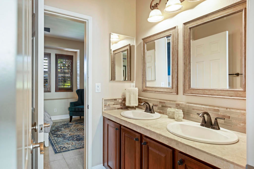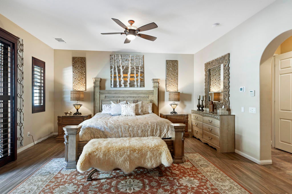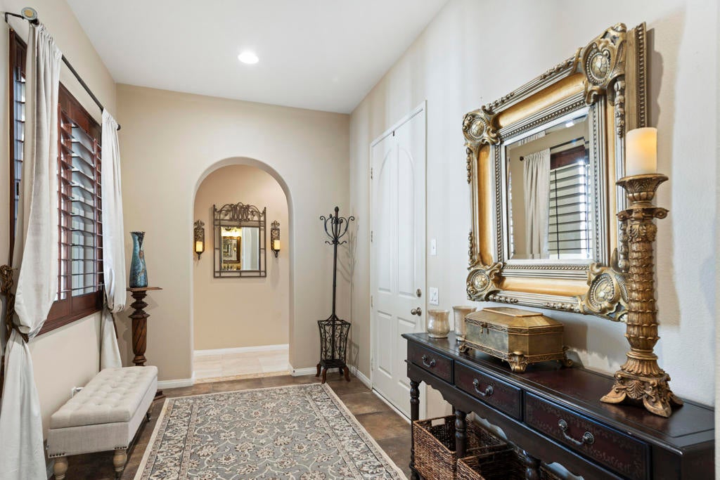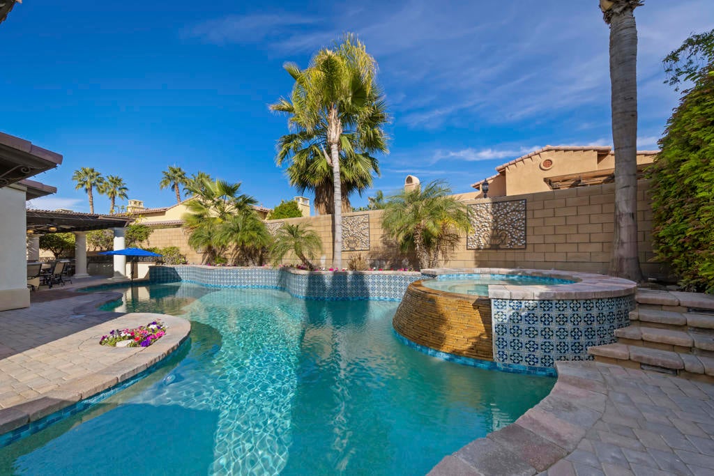 Now offered at $1,289,000. An exceptional value for this Resort Style Estate.. The home offers a rare blend of privacy, design and luxury leisure living. This is how desert living is meant to feel. Step into a home that feels less like a residence and more like your own private five-star resort, designed for unforgettable desert entertaining. Located in the coveted gated community of Rancho Santana in South La Quinta, this highly upgraded residence spans over 3,700 sq. ft. and offers 4 Bedrooms, 4 1/2 Bathrooms, plus an upstairs private Bonus Room ideal for a guest, media room, or home office. The home includes a spacious attached Casita which provides added flexibility and features custom built-ins, a sink, mini fridge, and a stacked-stone feature wall with built-in TV. The main living spaces are warm and inviting with a custom stone fireplace, built-in entertainment center, soaring ceilings, plantation shutters, and a dedicated billiard room. The expansive primary suite is privately situated in its own wing of the home and offers a true retreat, complete with a cozy fireplace seating area, large spa-like bathroom, and an oversized walk-in closet. Designed for the ultimate indoor-outdoor lifestyle, the resort-style backyard is an entertainer's dream. Highlights include a chef-grade outdoor kitchen with a sunken BBQ pit, wrap-around granite bar seating for eight, large outdoor TV, stainless steel cooktop, drawers, mini fridge, commercial ice machine, beer tap, and wine cooler. The PebbleTec wrap-around pool delivers all the bells & whistles, including two tanning shelves, a rooftop rain waterfall, three sheer descent waterfalls, a stacked-stone spill-over spa, and six deck jets. Additional amenities include a large gas firepit, a separate six-foot waterfall feature, custom lighting and fans, and a convenient poolside bathroom with shower and stackable washer/dryer. Custom pavers and wrought iron details surround the entire property, located near The Madison Club, polo and equestrian facilities, and just minutes from world-class golf, dining, entertainment, and the charm of Old Town La Quinta. Don't miss this rare Rancho Santana offering that truly must be experienced in person.