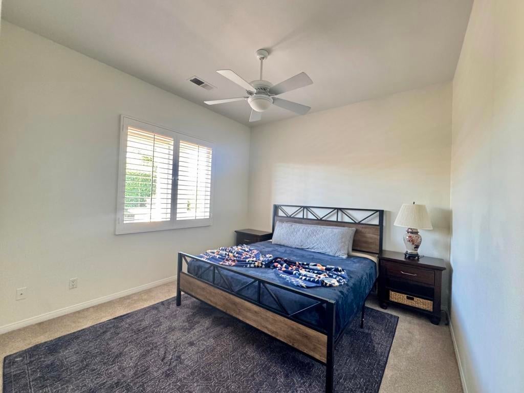 This remarkable 3-bed/2.5-bath/office home, 2129 SF, is the perfect place to embrace the desert lifestyle. It features a private backyard and patio with a pool and spa featuring Pebble Tech and a salt system, rose bushes, and fruit trees to cool off and enjoy the summer heat and festivities. Additionally, the house is equipped with a solar system and a Tesla battery, both completely paid off, has a 3-car garage, and sits on a cul-de-sac. The layout is a modern, open floor plan that highlights split bedrooms and a breakfast bar with easy access to the living room and home office. It also features stainless steel appliances, newer granite countertops, a newer sink and garbage disposal, newer lighting over the island area, newer washer and dryer, and a newer paint job throughout. Additionally the exterior of the house has been freshly painted. This house is situated in one of Rancho Mirage's most desirable gated communities, La Terraza, which has low HOA fees and is centrally located between the I-10 freeway, Hwy 111, Eisenhower Hospital, El Paseo, The Shops at Palm Desert, restaurants, and other key areas, and is ready to move in. Come see this stunning house today!