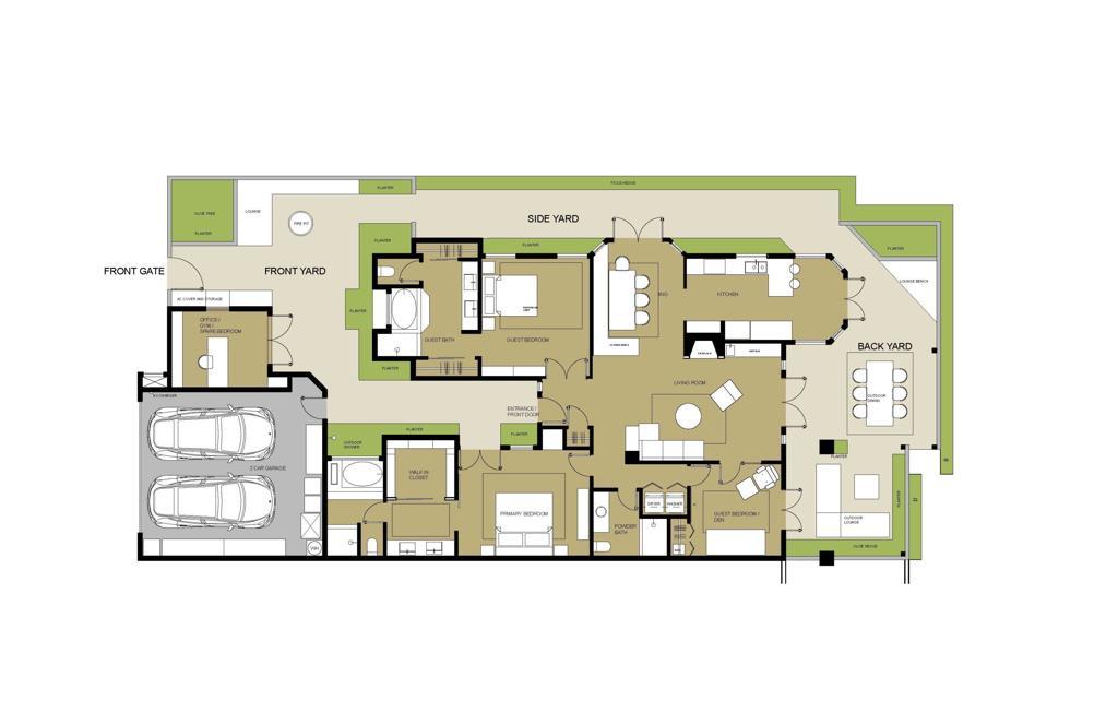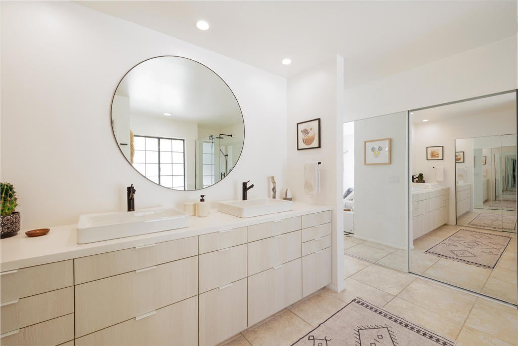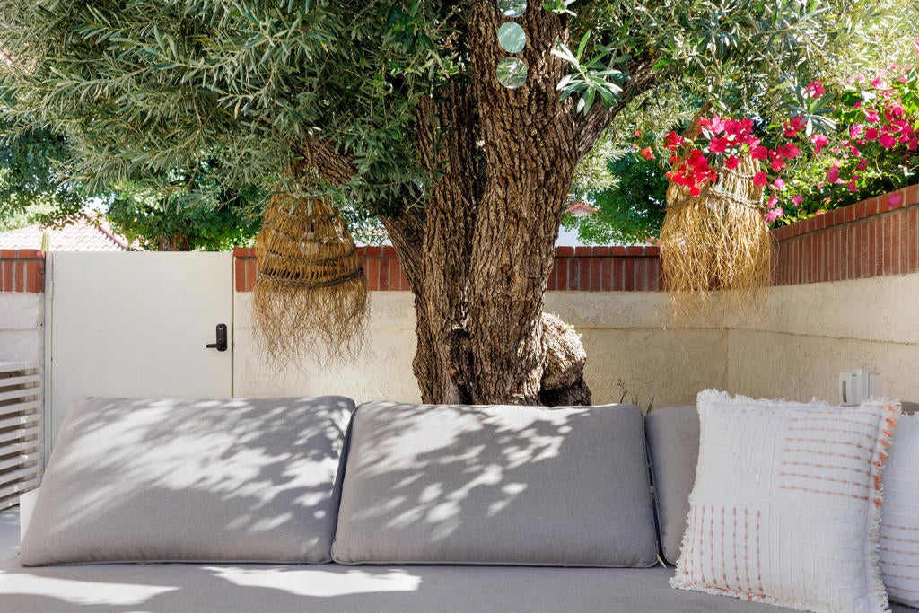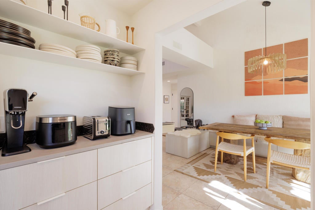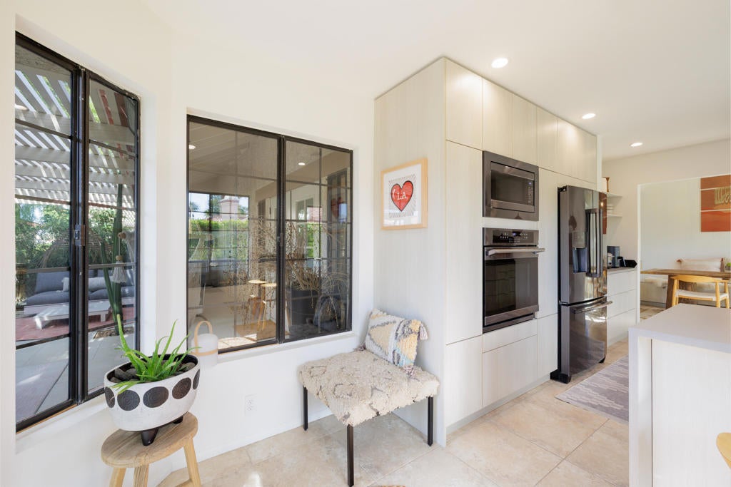 Turnkey European Modern Designer Home | Fully Furnished | Exceptional Outdoor LivingRare opportunity to own a beautifully curated home by a renowned European architect and designer couple, blending Austrian precision, Scandinavian minimalism, and Mediterranean warmth into a refined international aesthetic.Set behind a gated front courtyard, the home immediately offers a sense of privacy and serenity. This thoughtfully designed 3-bedroom, 3-bath + den residence was completely remodeled in 2022 with luxury finishes, custom details, and exceptional craftsmanship. Extensive upgrades include newer AC and ductwork, updated electrical runs, switches, and outlets.The chef's kitchen was rebuilt from the studs with newer plumbing, electrical, custom cabinetry, premium appliances, and solid quartz countertops. A remodeled wet bar includes reverse osmosis water filtration and custom lighting. All bathrooms feature newer vanities, plumbing, water closets, shower systems, doors, bathtub trims, and ventilation. The casita/office (converted 3rd-car garage) was fully rebuilt with recessed AC, newer electrical, and insulation.High-end furnishings include a custom natural-wood dining table and built-in pieces in the living room, dining room, and primary suite. The primary bedroom features a dramatic floor-to-ceiling driftwood and mirror barn door.Outdoor living is equally impressive, with multiple furnished patios for dining, lounging, and entertaining, surrounded by curated, high-end landscaping. A mature olive tree anchors the space with true Mediterranean character.Offered fully furnished, this turnkey home delivers elevated design, seamless indoor-outdoor living, and an exceptional lifestyle. The renovations are extensive and too many to list. See attached floor plan and list of features/renovations. Enjoy a resort-style experience with extensive services and amenities included in your HOA dues: 24-hour guard-gated entry, tennis & pickleball courts, fitness center, and community pools. Located minutes from El Paseo, fine dining, and world-class retail. Close to the Acrisure Arena--home of the Coachella Valley Firebirds and a venue for major concerts and events. The privately owned Desert Falls Country Club offers pay-as-you-play or membership options.
