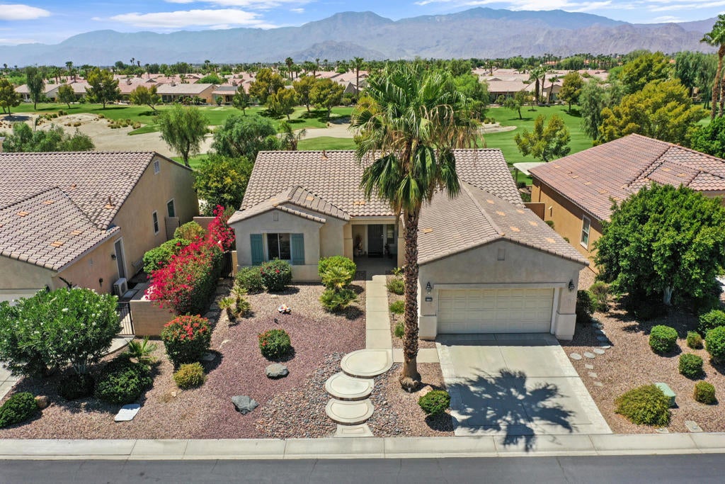 Set within the premier 55+ active adult community of Sun City Shadow Hills, this beautifully maintained Madera floor plan offers 1,854 sq. ft. (EST.) of thoughtfully designed living space, ideal for both everyday comfort and gracious entertaining. The open-concept layout features tile flooring throughout the main living areas, complemented by warm wood-style flooring in the bedrooms, creating a cohesive and sophisticated aesthetic. Custom window coverings enhance the home's light-filled interiors. The well-appointed kitchen is designed for both function and style, featuring granite countertops, stainless steel appliances, double ovens, and a spacious center island that opens seamlessly to the living and dining areas--perfect for hosting gatherings or enjoying relaxed daily living. The primary suite serves as a private retreat, offering a spa-inspired bath with dual vanities, a soaking tub, a walk-in shower, and a generous walk-in closet. A separate guest bedroom provides comfort and privacy for visitors, while the versatile den offers flexibility as a home office, hobby space, or additional lounging area. Outdoors, enjoy a covered patio surrounded by lush landscaping and southern golf course views, creating a peaceful setting for morning coffee or evening relaxation. The private above-ground spa offers the perfect place to unwind while taking in the serene desert surroundings. Residents of Sun City Shadow Hills enjoy an exceptional resort lifestyle with access to two clubhouses, championship golf, resort-style pools and spas, fitness centers, tennis and pickleball courts, and a vibrant social calendar. This inviting residence delivers the best of desert living--comfort, elegance, and community--all in one exceptional offering.