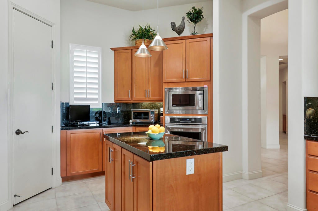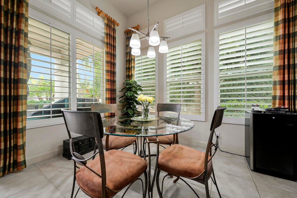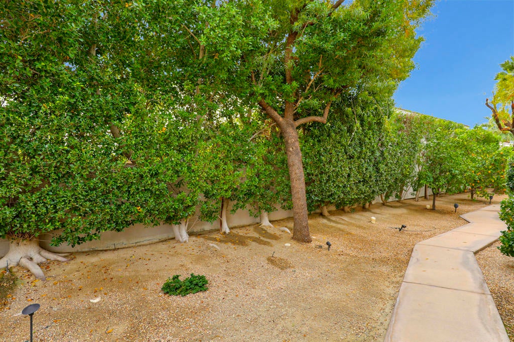Enjoy this serene setting on a large corner lot. This comfortable Belize model offers 3 spacious bedrooms including an attached casita. The separate entry in courtyard gives your guests total privacy to come & go easily. The dramatic rotunda foyer with soaring ceiling leads to an open living area with cozy fireplace, dining area and breakfast bar. The gourmet kitchen overlooks the living areas for ease in entertaining and everyday living, while taking in the view of the relaxing pool & spa nestled in nature. The formal dining room is located conveniently to the kitchen and depending on your lifestyle it could also be a media room or library. The spacious primary suite and luxury bath with dual vanities has oversized closet space and dressing area. The second oversized guest ensuite is situated opposite end of hall from the primary suite, giving guests quiet and privacy. The spacious Casita with it's courtyard entry, plenty of windows for a light & bright relaxing place for guests to enjoy their stay in the Desert in comfort. The large bathroom with dual vanities and oversized closet space to accommodate clothing and storage space. Looking for curb appeal? This corner lot that sets next to the greenbelt area which compliments the deep front lawn on the over 11,000 sq. ft. lot and the front is maintained by the HOA gardeners.