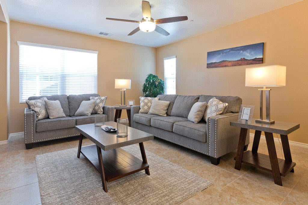 Spanish Walk Seasonal Rental: Upgraded Luxury with Resort AmenitiesThis exceptional, fully furnished 4-bedroom, 3-bath home in the desirable Spanish Walk community is available for monthly lease starting December 1, 2025. Experience the ideal blend of spacious modern living and resort-style amenities. Home Highlights (2,506 sq. ft.)Gorgeous, Upgraded Interiors: Built in 2015, this home features high-end finishes and an open-concept design perfect for entertaining. The heart of the home, featuring a gourmet kitchen that flows seamlessly into the formal dining area and family room with a cozy fireplace. The main floor includes a convenient private bedroom and full bath, perfect for guests, in-laws, or a dedicated home office. The upstairs features a private Master Bedroom and luxurious bath, separated from the two additional bedrooms and bath by a large, central loft/entertainment room. Includes an upstairs laundry room and a three-car tandem garage with epoxy flooring, providing abundant storage and parking.Resort-Style Community AmenitiesStep outside to enjoy a vibrant, family-friendly community that feels like a permanent vacation: Three Sparkling Pools and Space. Enjoy a fantastic location with quick and easy access to all your needs: excellent shopping, popular dining spots, and immediate access to the freeway for convenient travel. This is a non-age-restricted community.