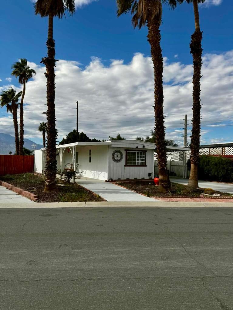 Cozy, updated and affordable home in Tri Palm Estates & Country Club with panoramic San Jacinto Mountain views! This inviting 2-bedroom home sits on a generously sized lot conveniently located near the community entrance. Inside, you'll find an updated kitchen featuring designer tile and modern lighting, a convenient half bath, and a three-quarter bath with stone tile flooring and a roll-in tile shower with grab bars for added safety. Laminate flooring runs throughout the home, creating a clean, cohesive look.The property offers ample guest parking with a 1-car garage, carport, and driveway. Outdoors, enjoy low-maintenance landscaping and a partially covered patio--perfect for relaxing and taking in the desert scenery.Tri Palm Estates & Country Club is a sought-after active 55+ community where you own the land, and ownership includes unlimited golf for two owners on title on both the 18-hole and 9-hole par-3 courses. Residents also enjoy a putting green, swimming pools and spas, tennis, pickleball, basketball, shuffleboard, and a clubhouse with banquet room, bar, restaurant, billiard room, and free Wi-Fi. Ideally located near Costco, Home Depot, Agua Caliente Rancho Mirage Casino, Eisenhower Medical Campus, and Acrisure Arena, with easy I-10 access to Rancho Mirage, Palm Desert, and downtown Palm Springs.Opportunities like this--combining updates, affordability, views, land ownership, and resort-style amenities--are rare. Schedule your showing today and see for yourself why this home stands out.