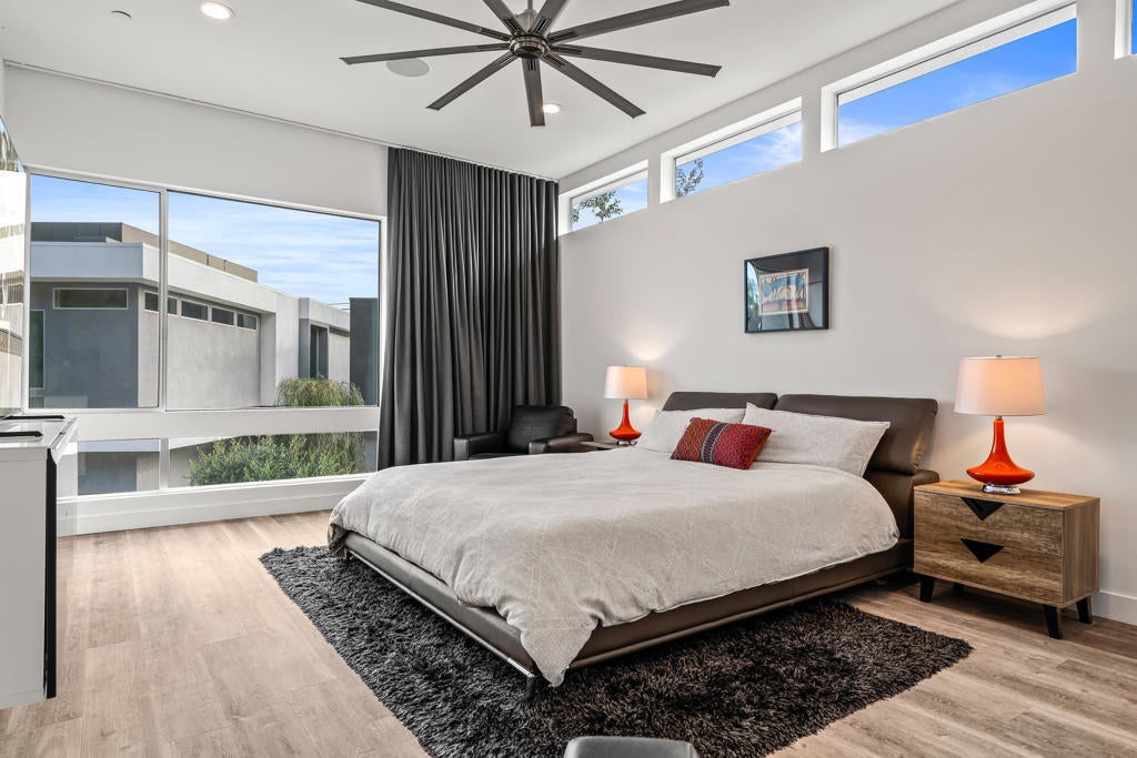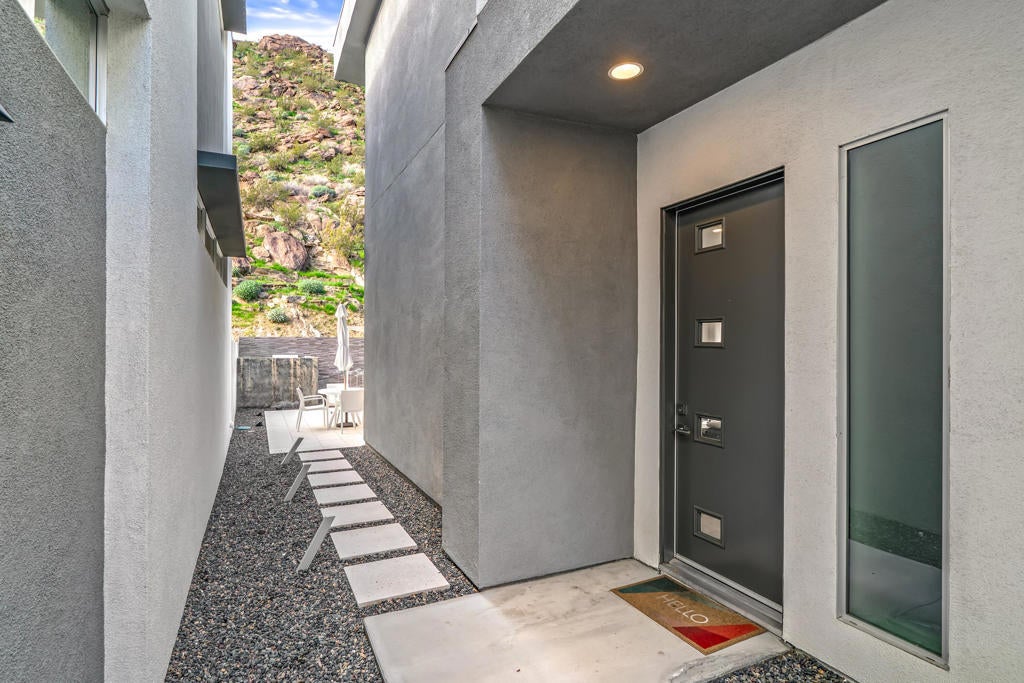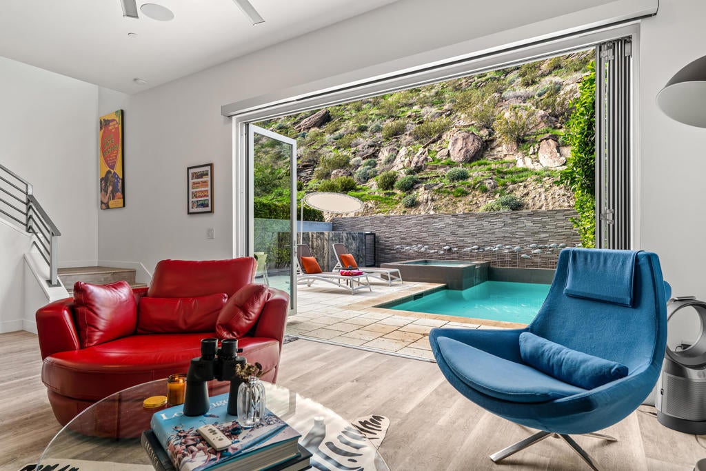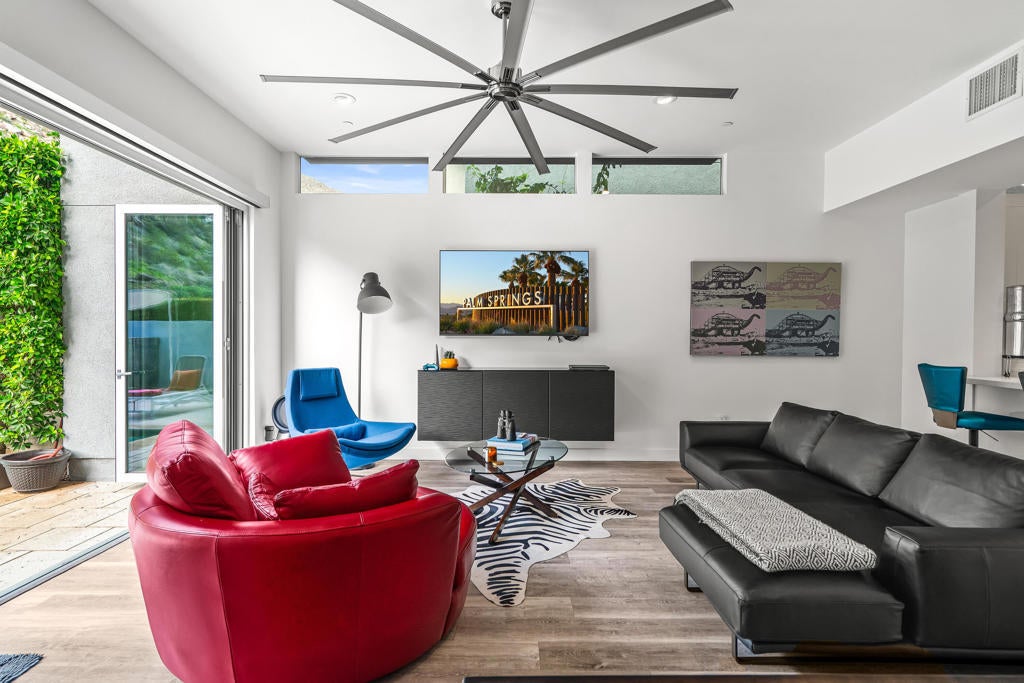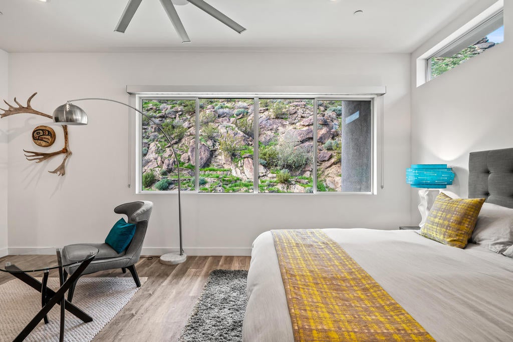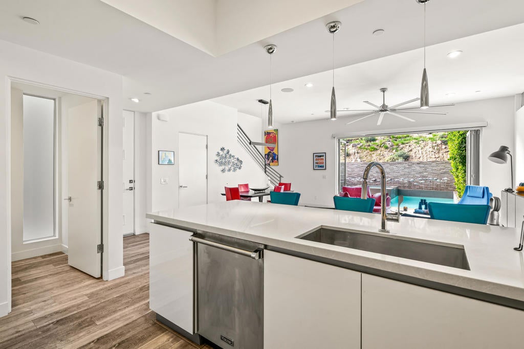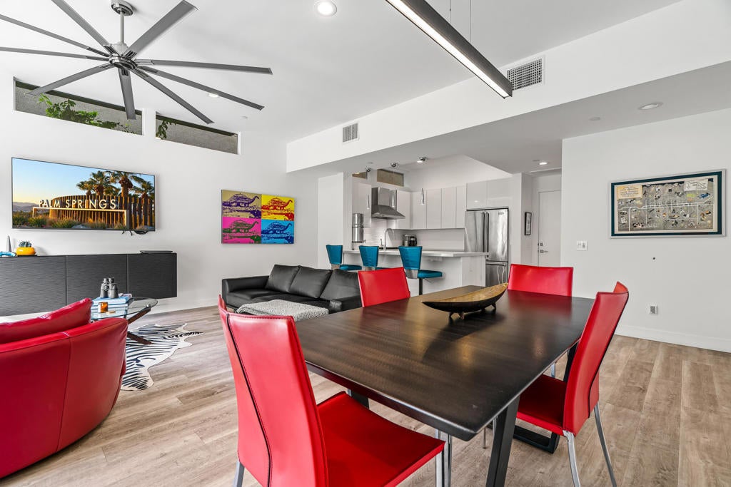 Best value at the Dakota! Nestled within the prestigious Dakota gated enclave in South Palm Springs on fee simple land, this gem offers the epitome of contemporary luxury living. With 38 single-family homes built in 2017 in a prime location near downtown with its restaurants, shops and entertainment as well as hiking trails, this property is sure to tug at your heartstrings. This home features nearly 1900 square feet of grand living space on two levels boasting two spacious bedrooms, each with its own en-suite spa-like bathroom, as well as a versatile den area perfect for a home office. The clean and modern design features luxury vinyl plank floors in the main living areas, Porcelanosa tile in the bathrooms, multiple clerestory windows with custom designer window treatments and beautiful natural light. The chef's kitchen offers Viking appliances, elegant Caesar stone countertops, and Hans Grohe fixtures. The living space seamlessly extends to the outdoors through La Cantina bi-fold doors, leading to a private backyard oasis. Here, you'll find upgraded pavers and finishes, a refreshing sparkling pool with a soothing water feature, a raised spa framing dramatic & breathtaking vistas of the San Jacinto mountains. Additional highlights include a 2-car garage with an epoxy finish, a powder room and built-in sound system. Looking for an easy move-in? this nicely furnished property can be purchased turnkey outside of escrow. Call for private viewing and experience Palm Springs lifestyle at its finest!