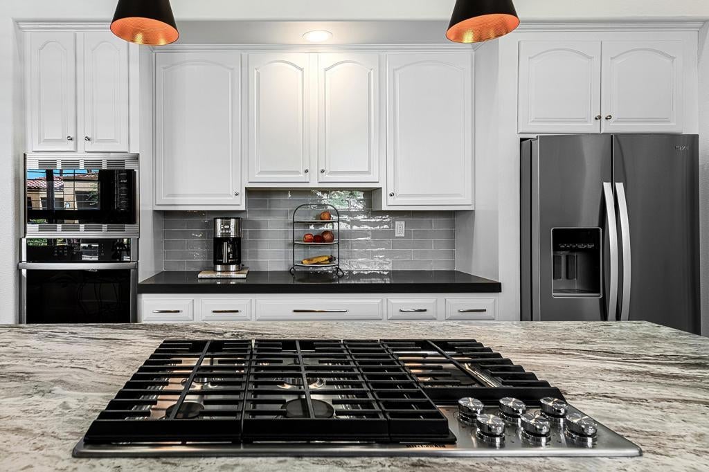 - AppliancesDishwasher, Gas Cooktop, Gas Water Heater, Microwave, Refrigerator, Disposal, Range Hood, Vented Exhaust Fan