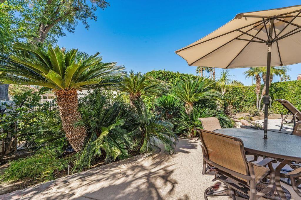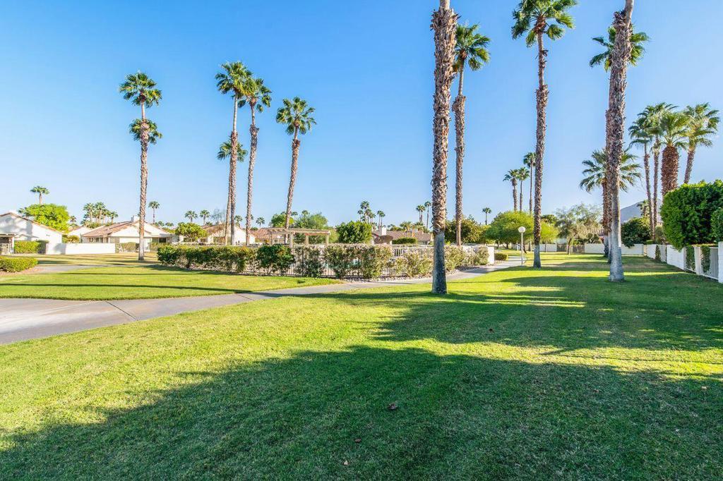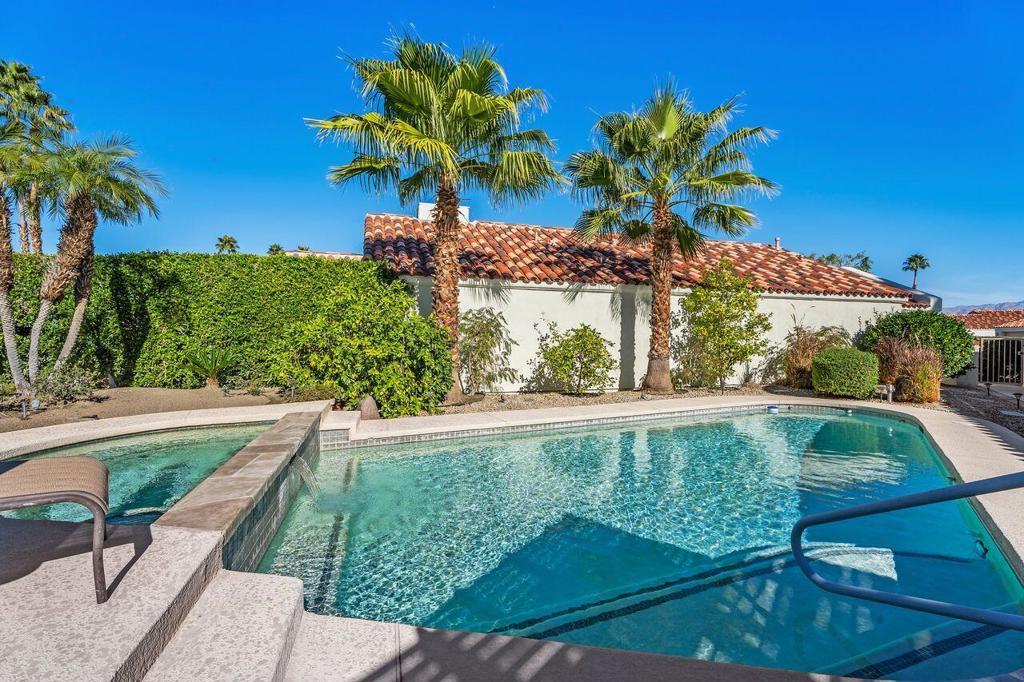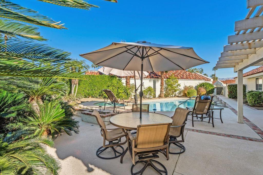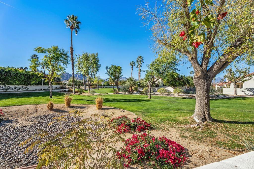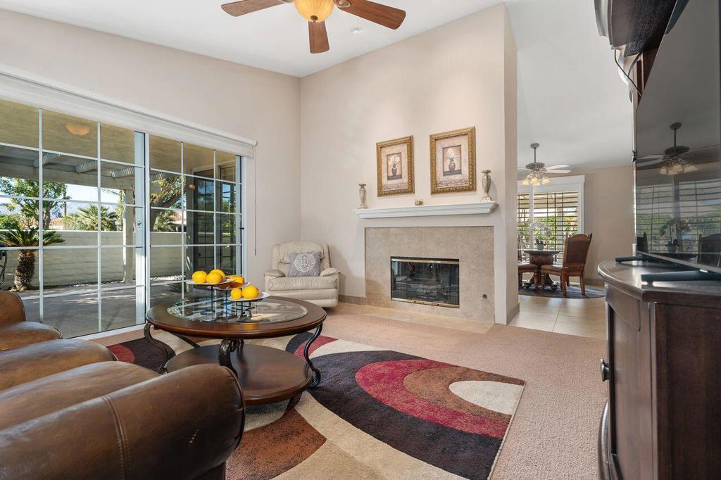 This well maintained Home in the Desirable Gated Community of Desert Breezes islocated on a quiet cul‑de‑sac,. This property features three‑bedroom two‑bath. Third bedroom currently being used as office. it offers resort‑style living with a private pool and spa surrounded by lush landscaping, mature palms, and citrus trees and gorgeous mountain views. A newer AC system and a two‑car garage add comfort and convenience.The home backs onto an expansive greenbelt--perfect for dog walking and outdoor enjoyment. Inside, you'll find a spacious primary suite with an en‑suite bath, a generous living room with a fireplace, and a formal dining room. Offered fully furnished per inventory.Desert Breezes is known for its pristine grounds and unbeatable location in Palm Desert, steps from La Quinta, and directly across from the world‑renowned Indian Wells Tennis Garden. Community amenities include low HOA, a state‑of‑the‑art fitness center, five pools and spas, four tennis courts, and pickle ball courts.